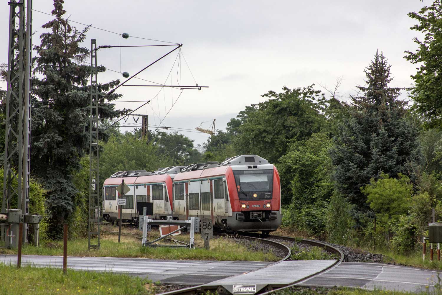 Rechts der Abzweig nach Babenhausen und die Gleise der Hanauer Hafenbahn