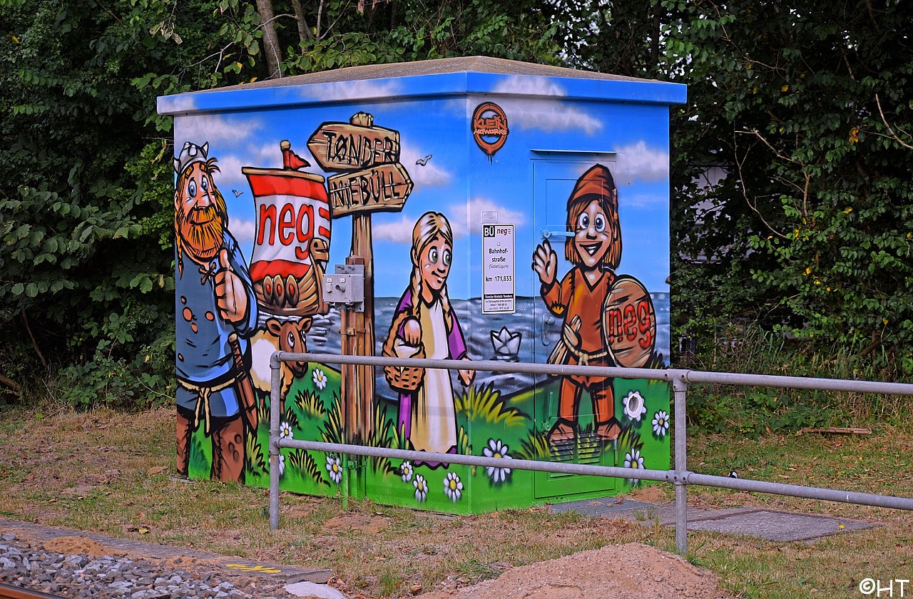 Niebüll 162,00 - Süderlügum 171,64 - Grenze Deutschland/Dänemark 175,29 = [km 67,9 - Tønder 64,0 - Bramminge 0,0] (2002)