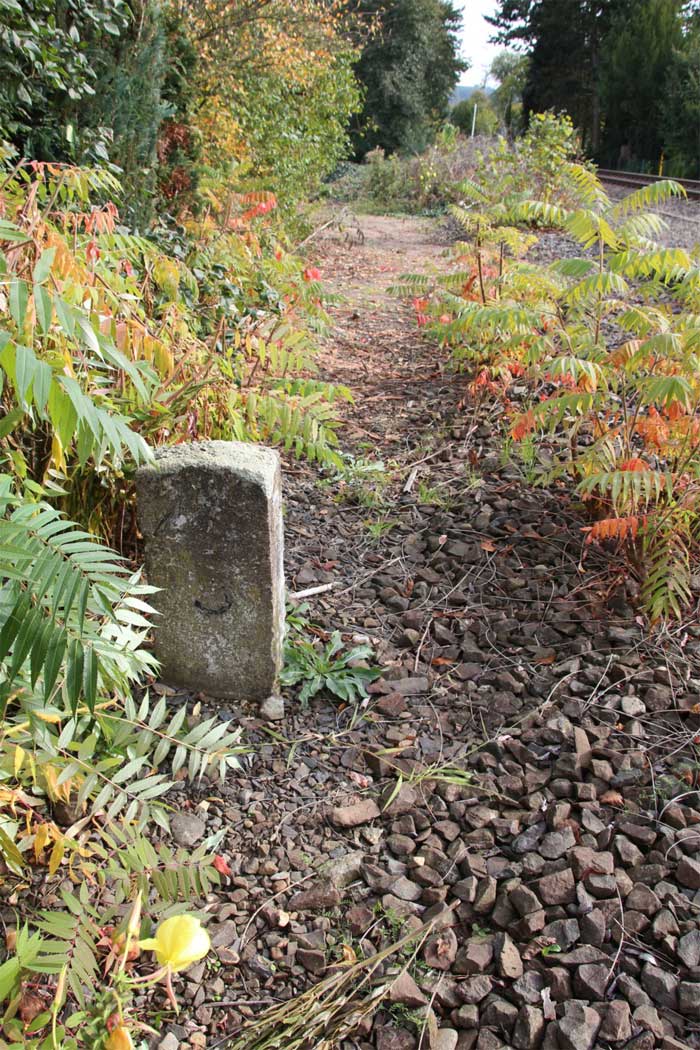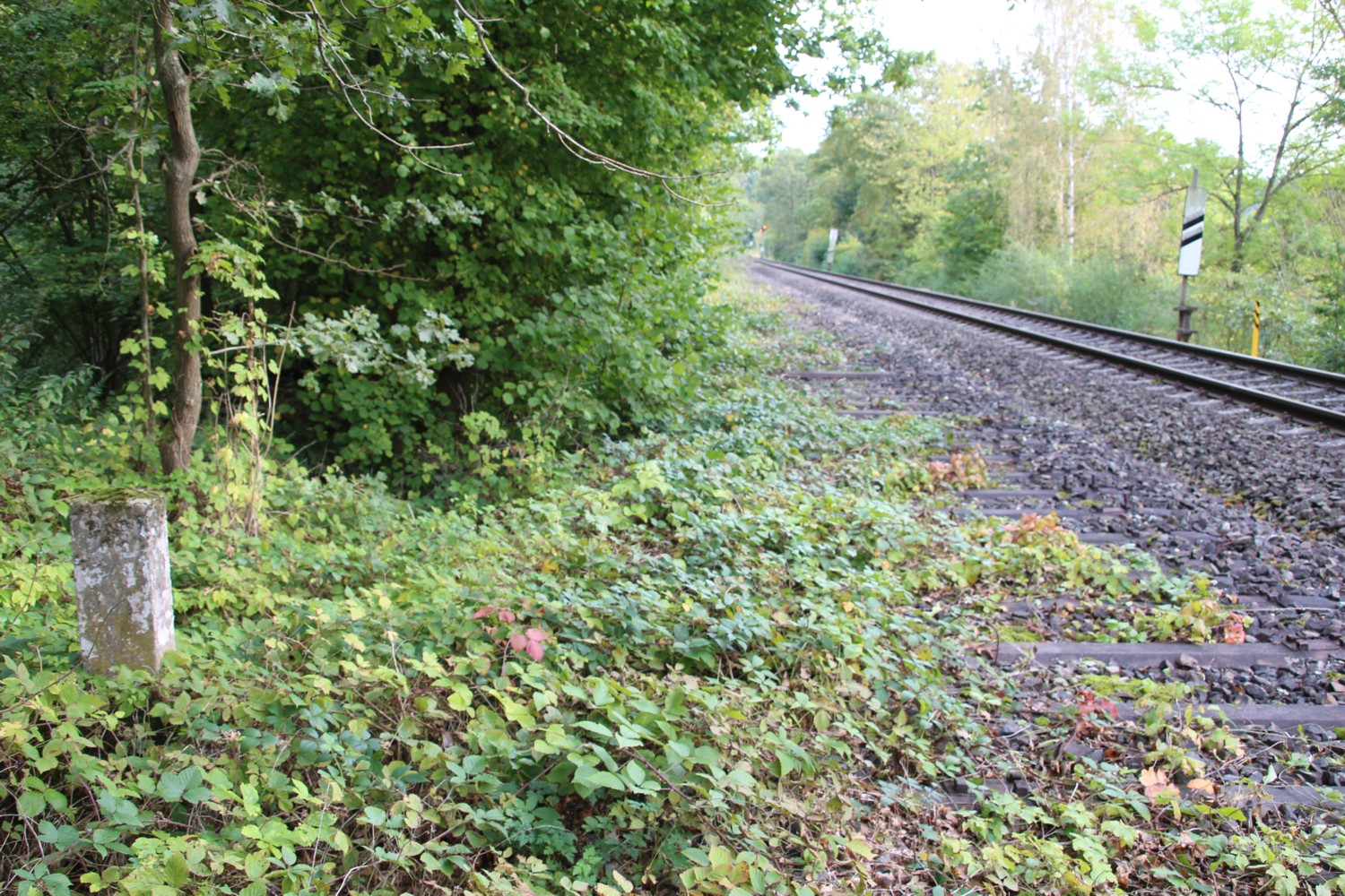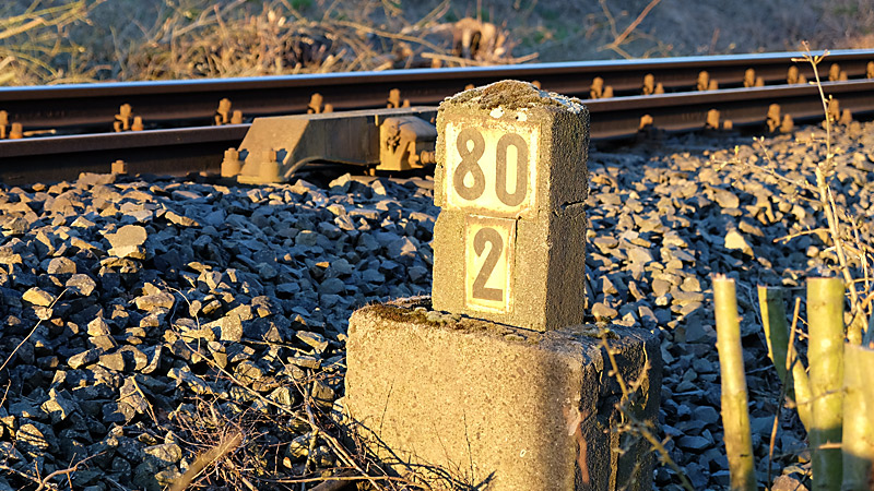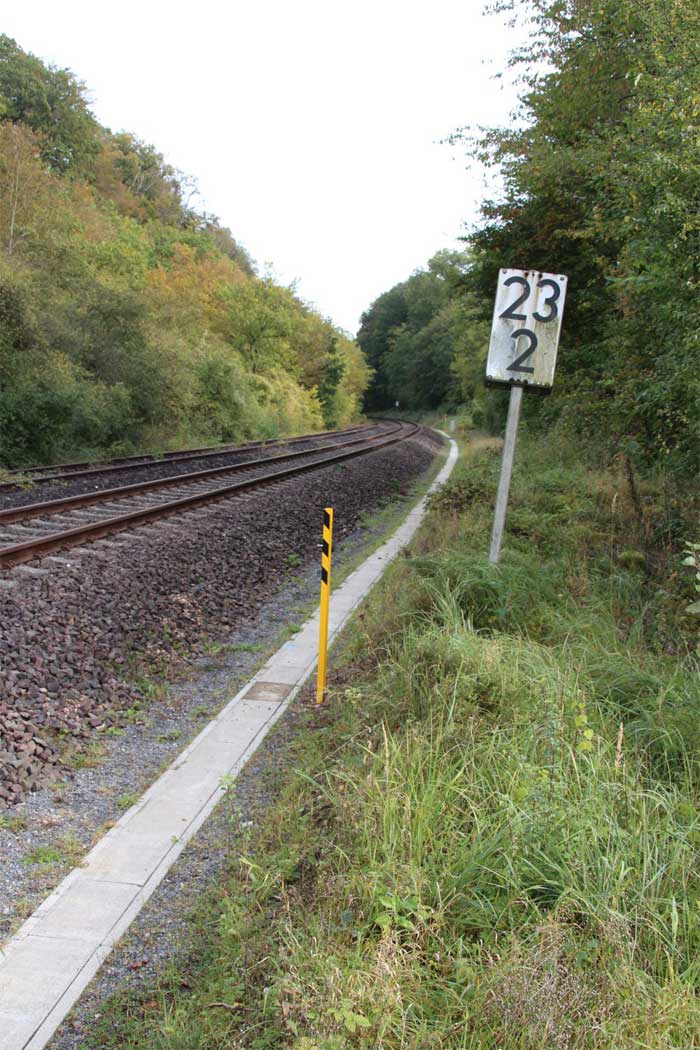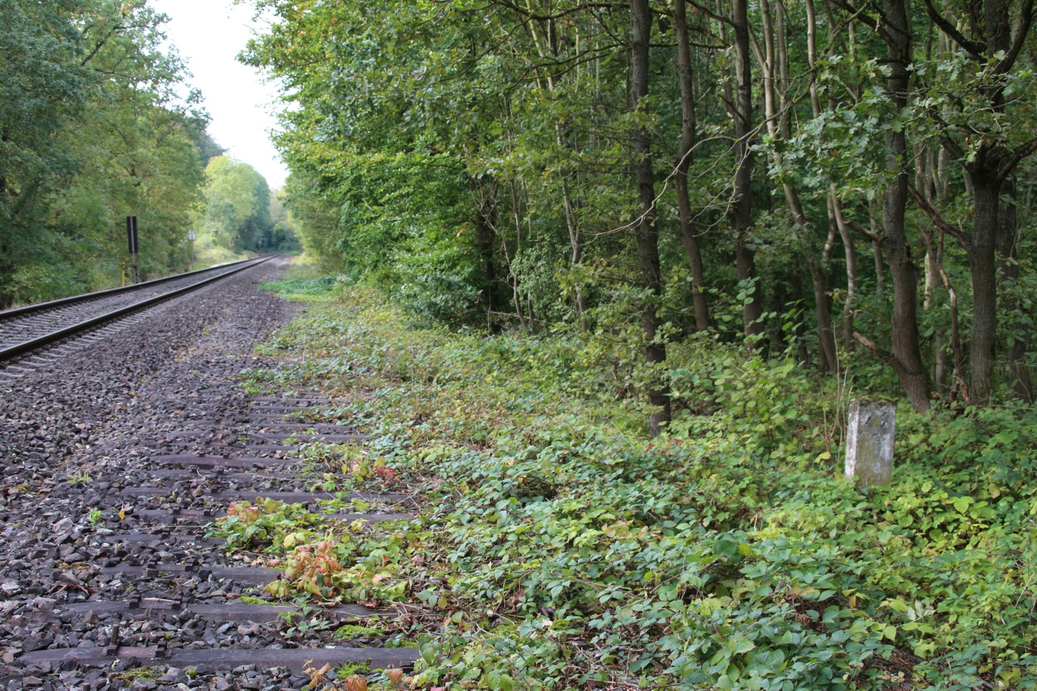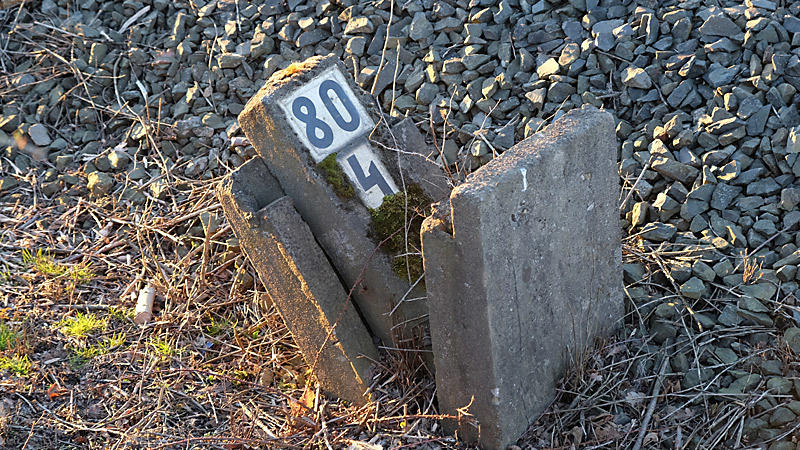 km 65,7 (Stein) und km 65,8 (Stein und Tafel) am Abzw Uffeln - Blick Richtung Löhne