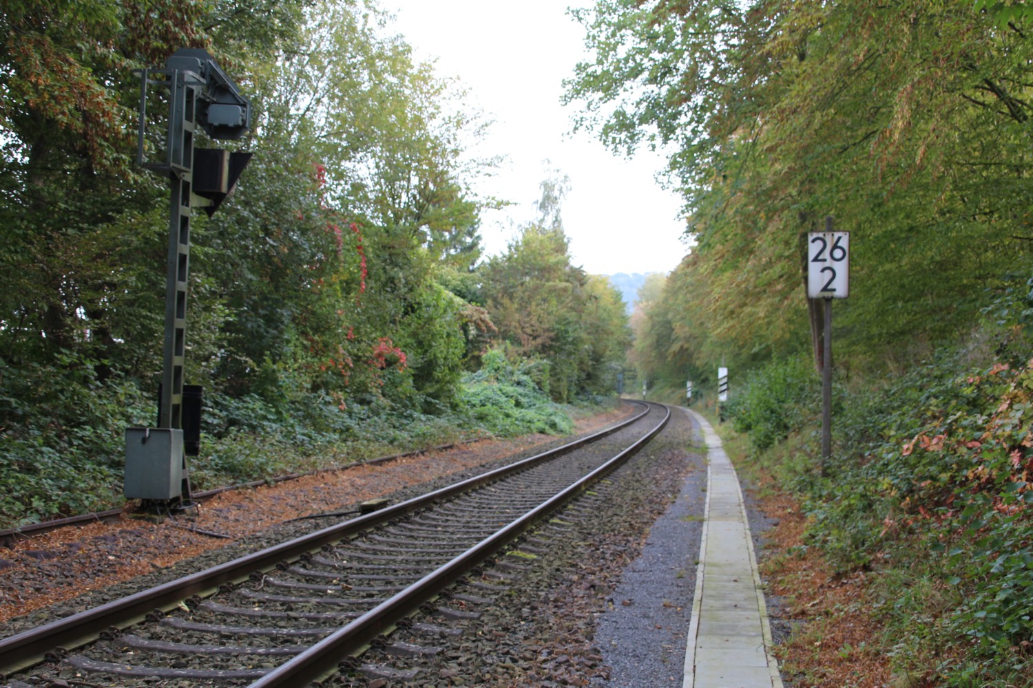 km 26,5 der Strecke Barntrup Kleinbf 0,0 - Rinteln Extertalbf 26,5 (Extertalbahn) | ||