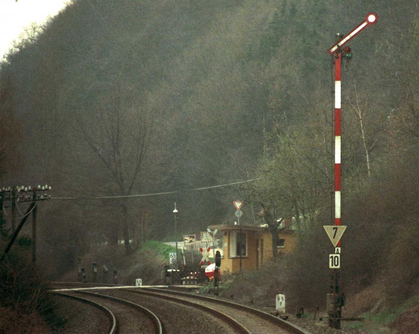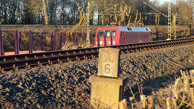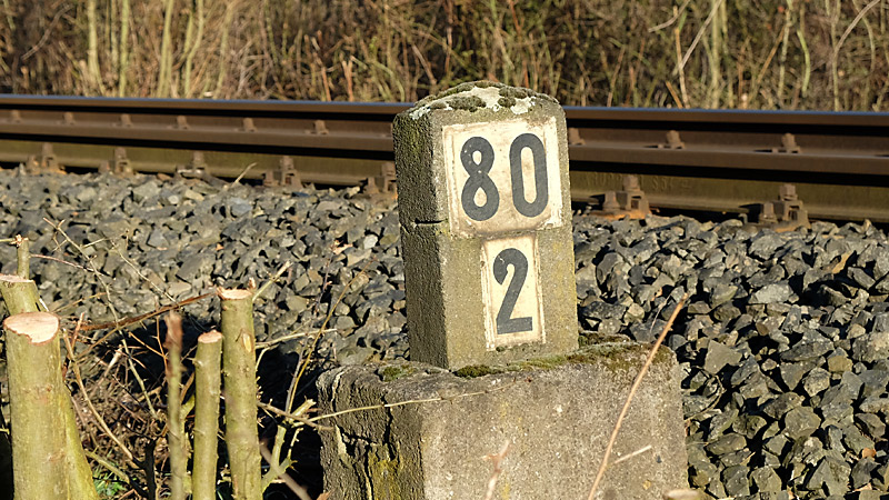 km 85,30 der Strecke (Hannover Hbf 0,0 - Wunstorf 21,40) - Minden (Westf) 64,36 - Löhne (Westf) Pbf 85,30 - Bielefeld Hbf 109,45 - Hamm (Westf) Rbf 178,24 (2990) | ||