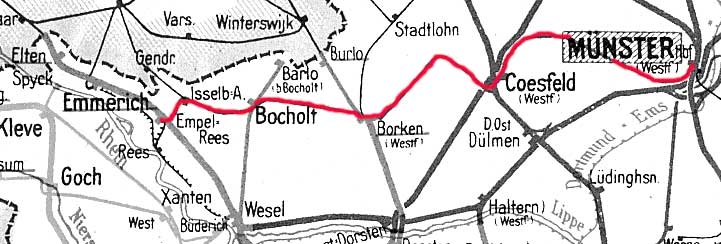 Empel-Rees 0,0 - Bocholt 18,63 - Borken (Westf) 37,38 - Coesfeld (Westf) 68,94 - Münster (Westf) Hbf 110,38