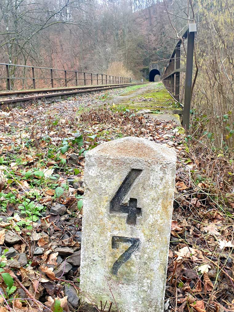 km 142,2 (Stein und Tafel) gehörenzur Strecke