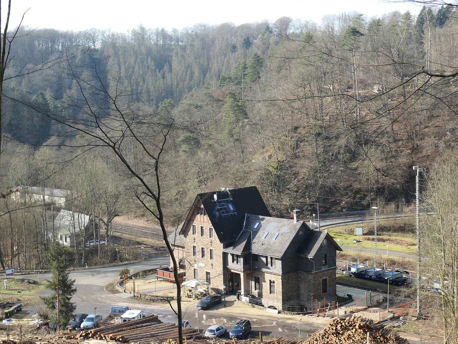 Au (Sieg) 74,02 km 64,75 der Strecke Köln Deutz 0,0 - Troisdorf 20,06 - Au (Sieg) 64,75 - Betzdorf (Sieg) 82,97 - Haiger 118,83 - Dillenburg 125,00 - Wetzlar 153,40 - Gießen 166,00