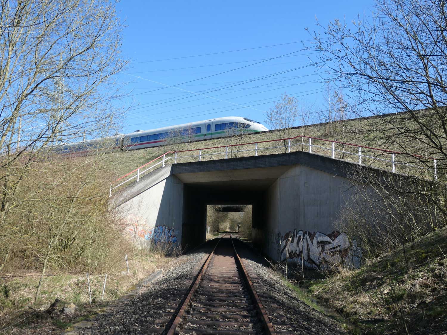 Im Hintergrund das Nordostportal des Grenzau-Tunnels