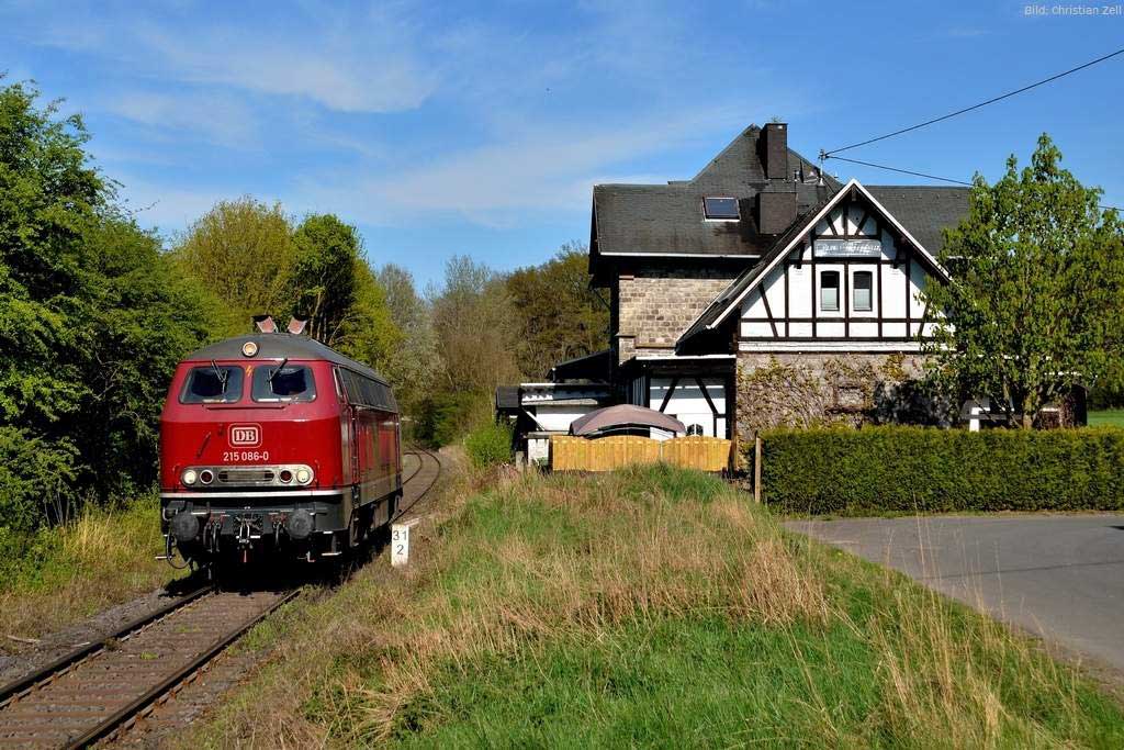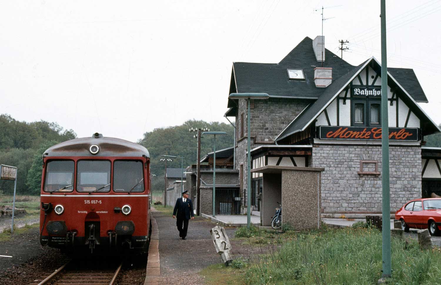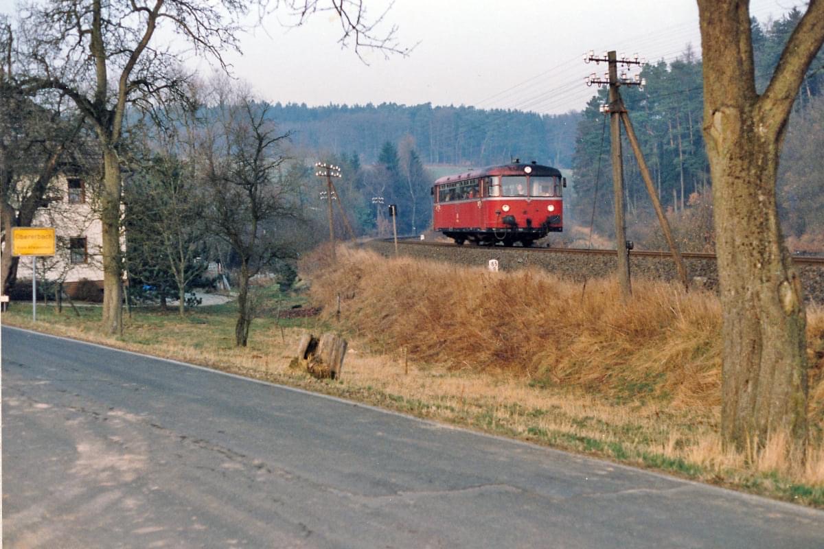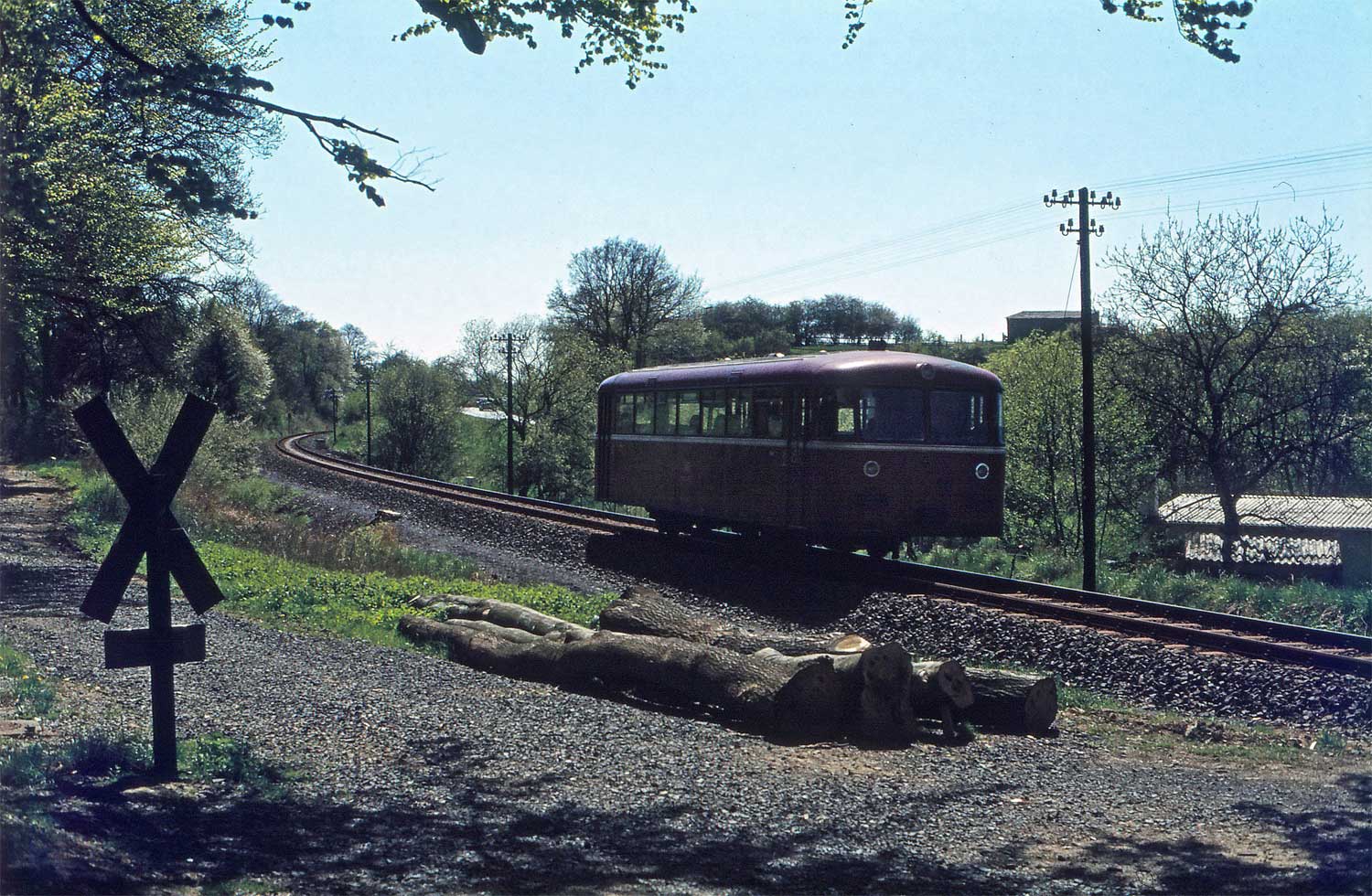Am 14. Mai 1980 lungerte ich gegen 8.35 Uhr mal wieder mit der Kamera an der Strecke von Altenkirchen nach Siershahn südöstlich des Bahnhofs Seifen an der Brücke über den Holzbach herum.