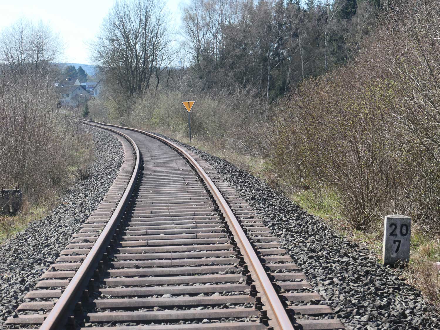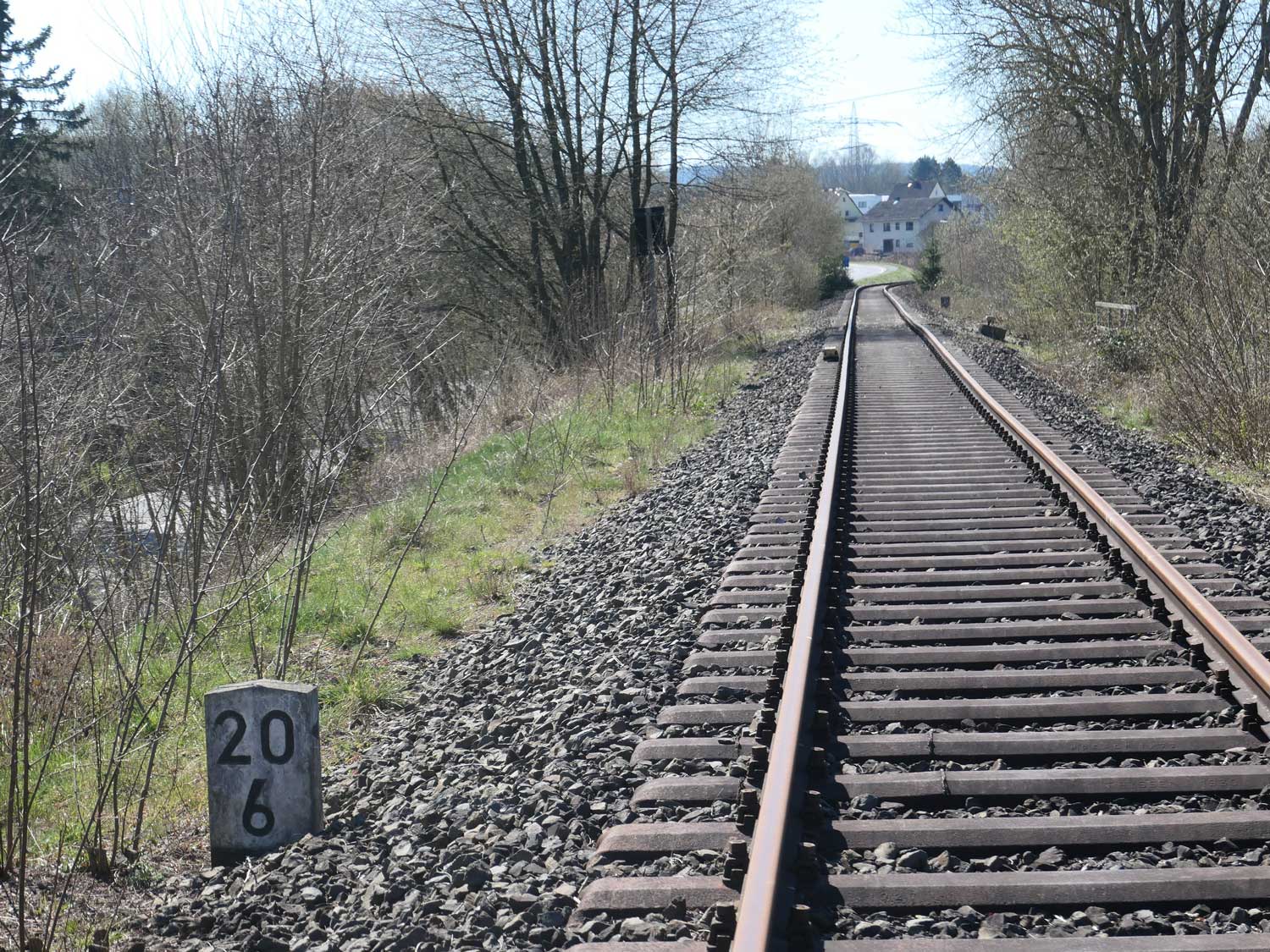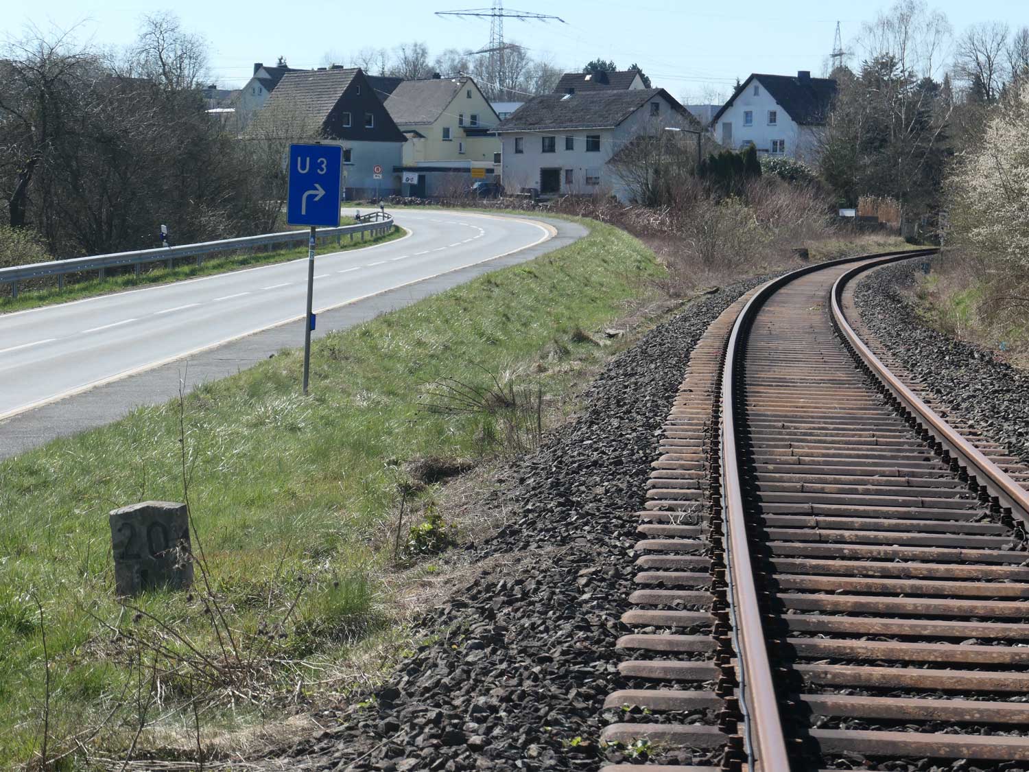 Von links kommt die Strecke Staffel 0,0 - Siershahn 29,76