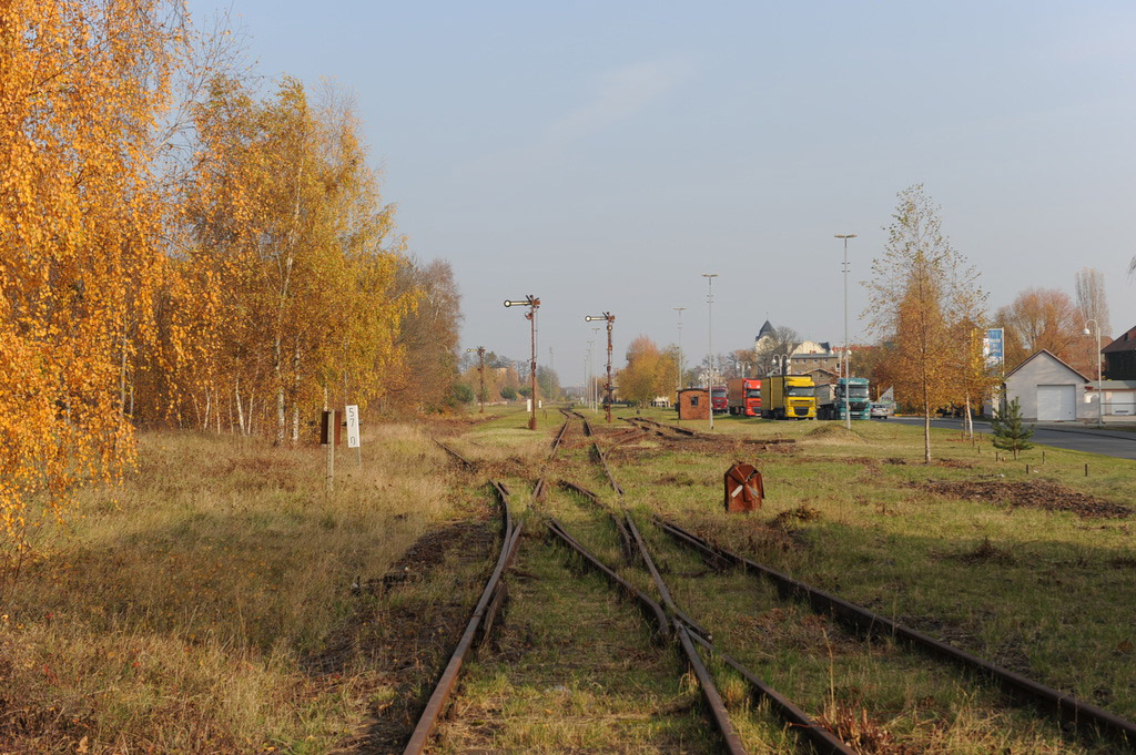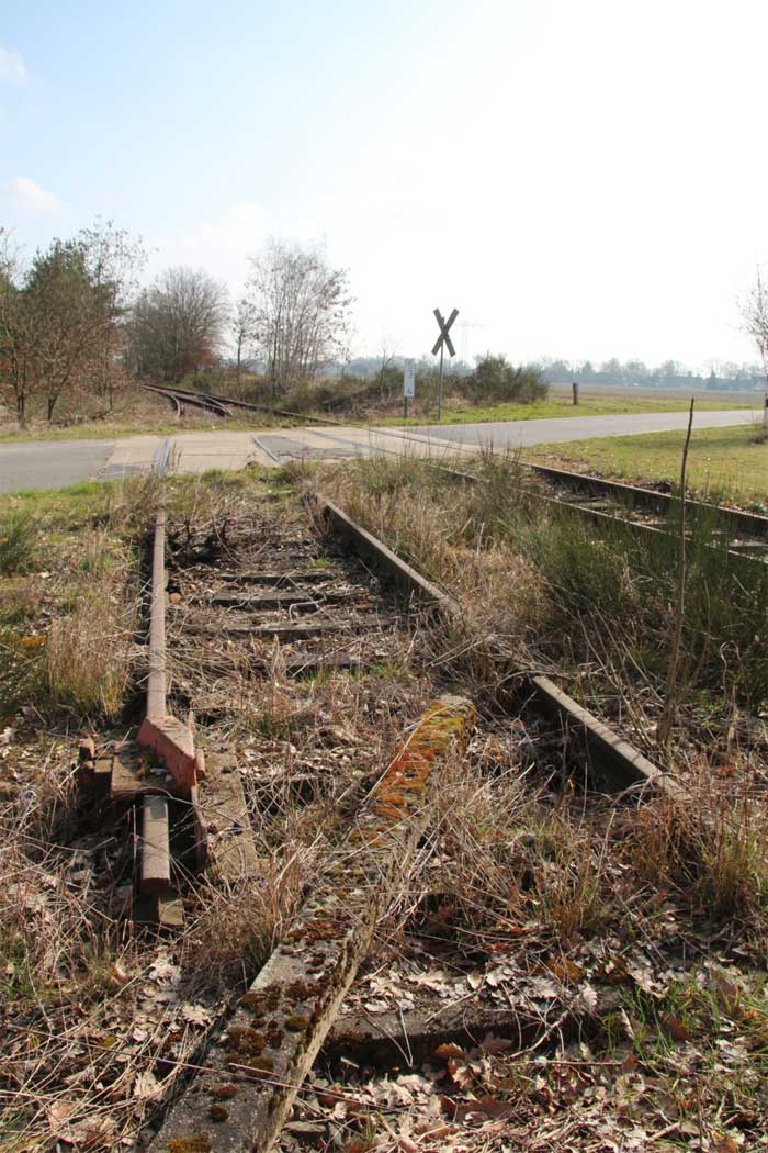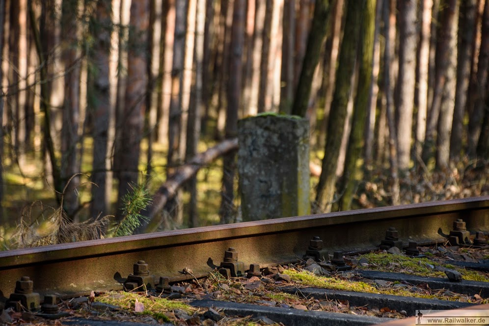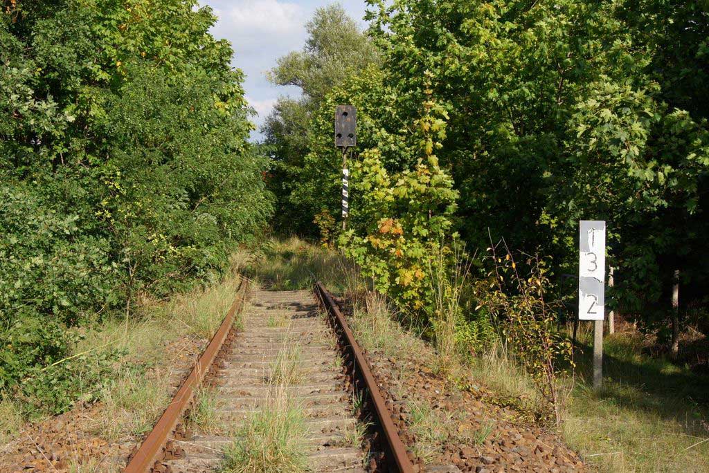 Links das Gleis der Strecke Grunow (Niederlaus) 0,0 - Beeskow 9,41 - Königs-Wusterhausen 58,04