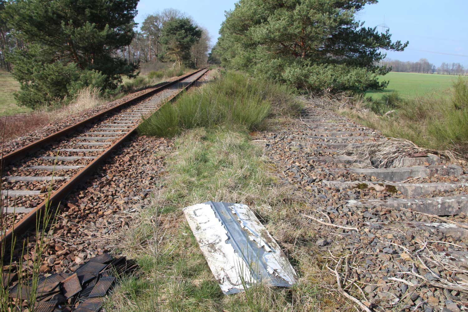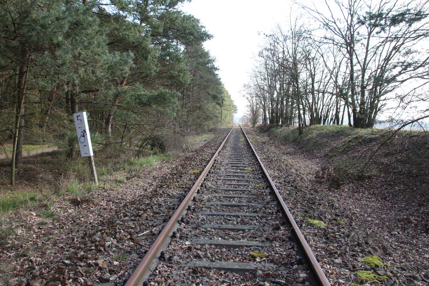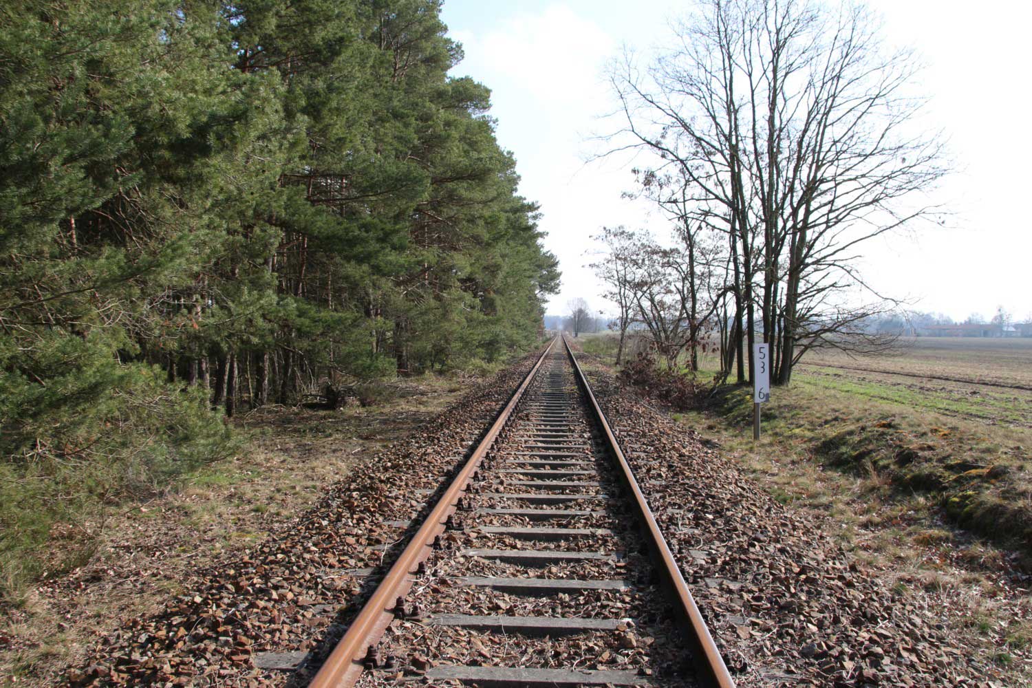 Links das Gleis der Strecke Grunow (Niederlaus) 0,0 - Beeskow 9,41 - Königs-Wusterhausen 58,04