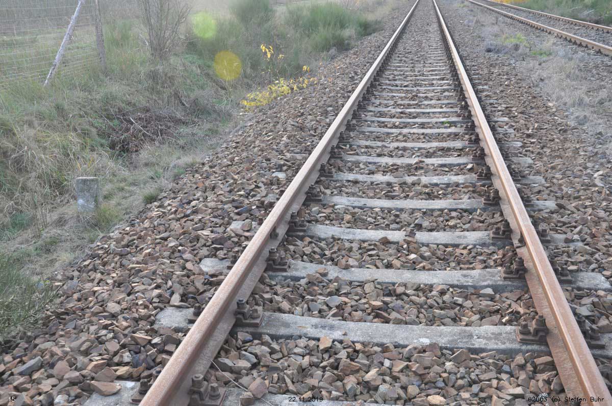 km 0,8 zwischen Falkenberg (Elster) (unten) und Falkenberg (Elster) Nord - Blick Richtung Falkenberg (Elster) (unten)