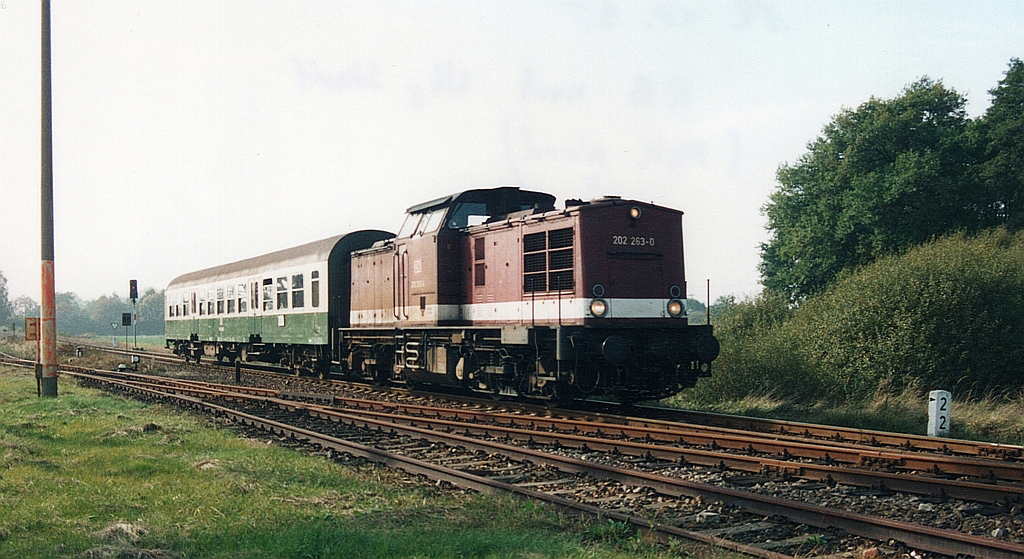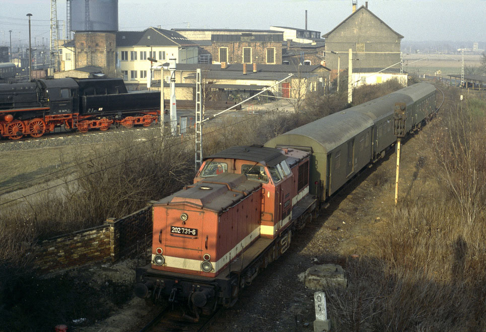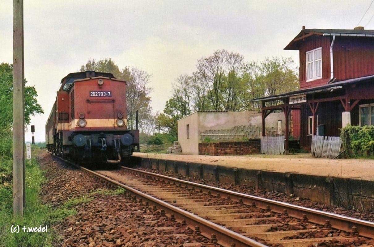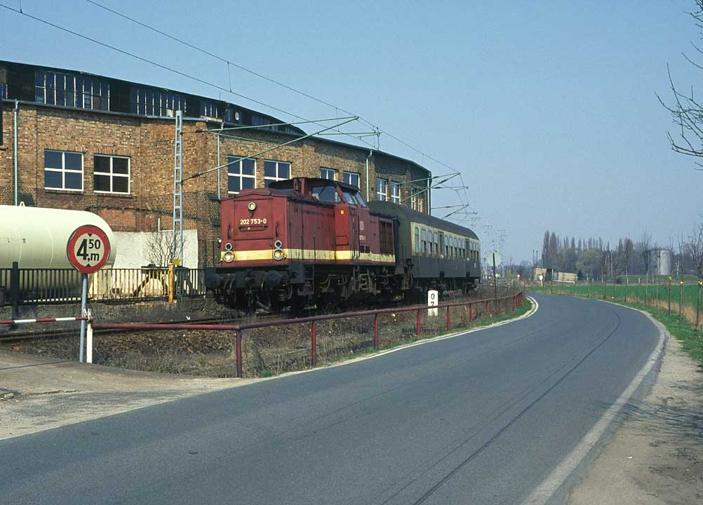 km 0,7 in Falkenberg (Elster) (unten) - 202 753 mit einer RB aus Ri Herzbeg (Elster) Stadt kommend