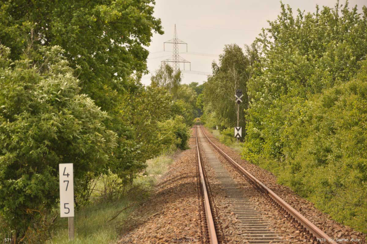 km 0,7 zwischen Falkenberg (Elster) (unten) und Falkenberg (Elster) Nord - Blick Richtung Beeskow
