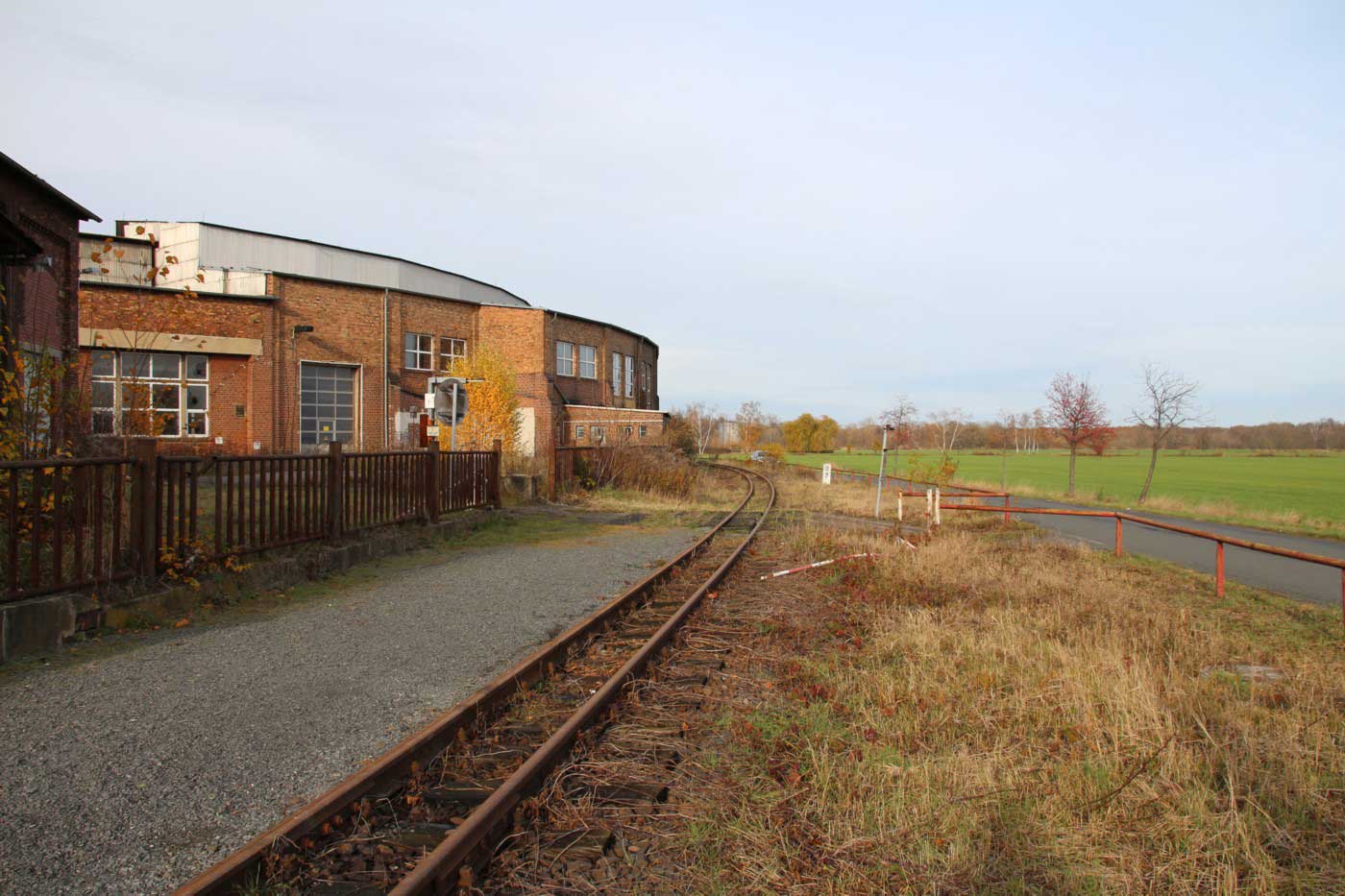 Die Strecke führte ursprünglich außen um das Bw herum.