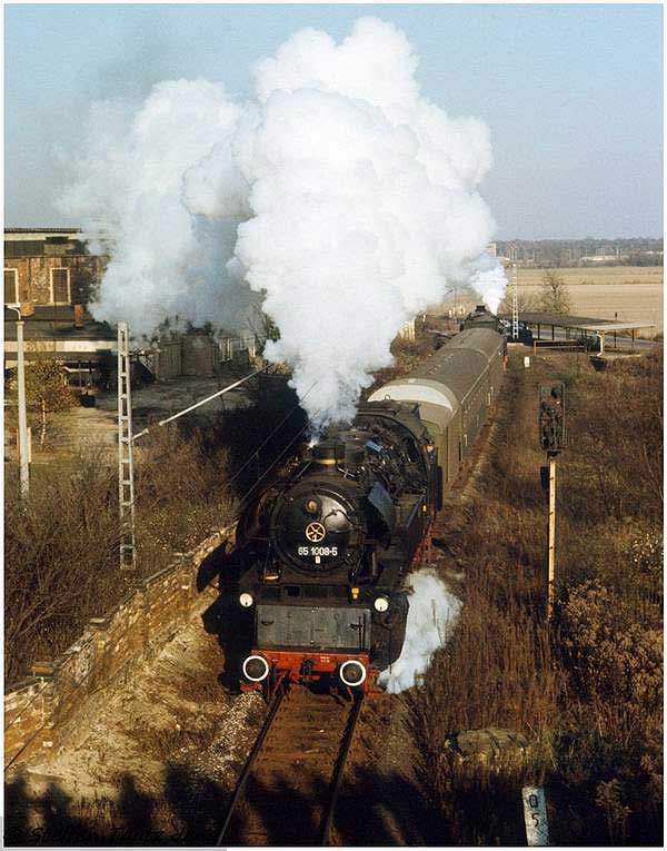 km 148,18 der Strecke Węgliniec (Kohlfurt) 0,00 - Grenze Polen/Deutschland km 13,424 = km 13,53 - Hoyerswerda 72,77 - Falkenberg (Elster) (unten) 148,18 - Lutherstadt Wittenberg (Provinz Sachsen) [früher: Wittenberg (Provinz Sachsen)] 201,93 - Roßlau (Elbe) [früher: Dessau-Roßlau] 233,68 (6207) | ||