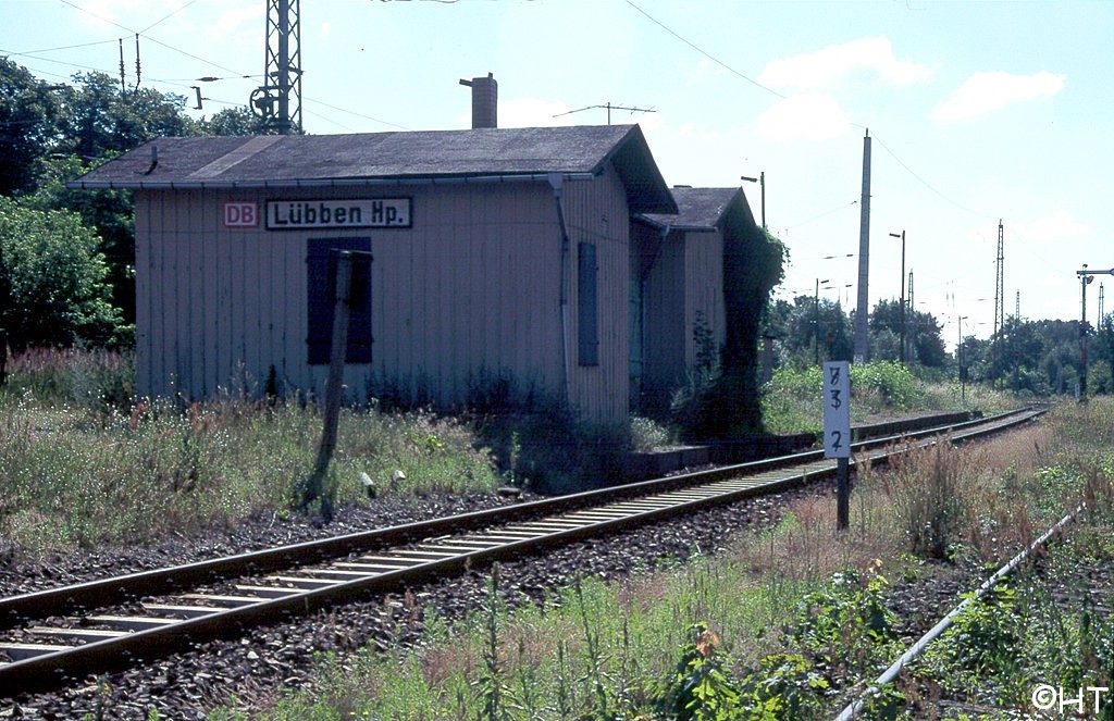 Lübben (Spreewald) | 73,52 | km 74,63 der Strecke Berlin Görlitzer Bf 0,0 - Lübbenau (Spreewald) 85,61 - Cottbus 114,77 - Görlitz 208,44 (kommend)/207,90 (gehend) - Hagenwerder 217,42 - km 217,60 = ( km 23,44 - Zittau 0,0) (6142) |