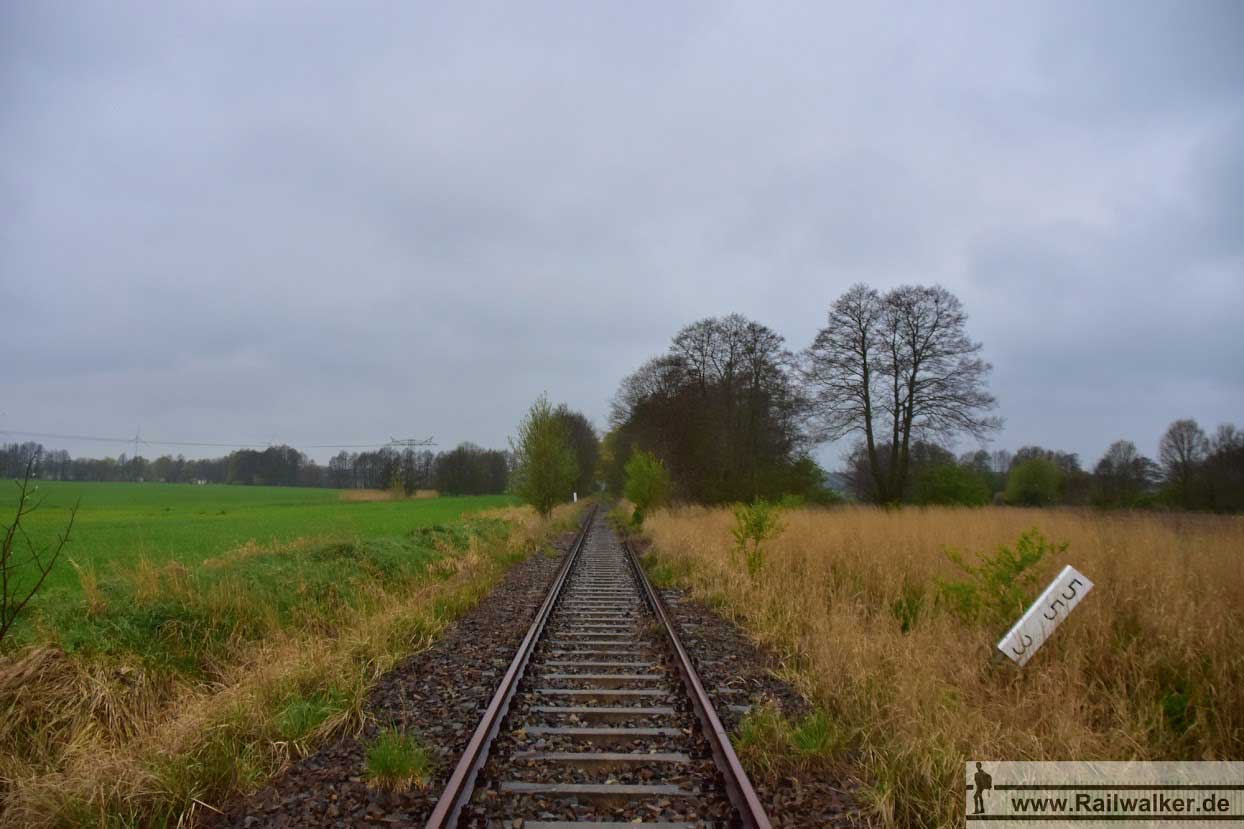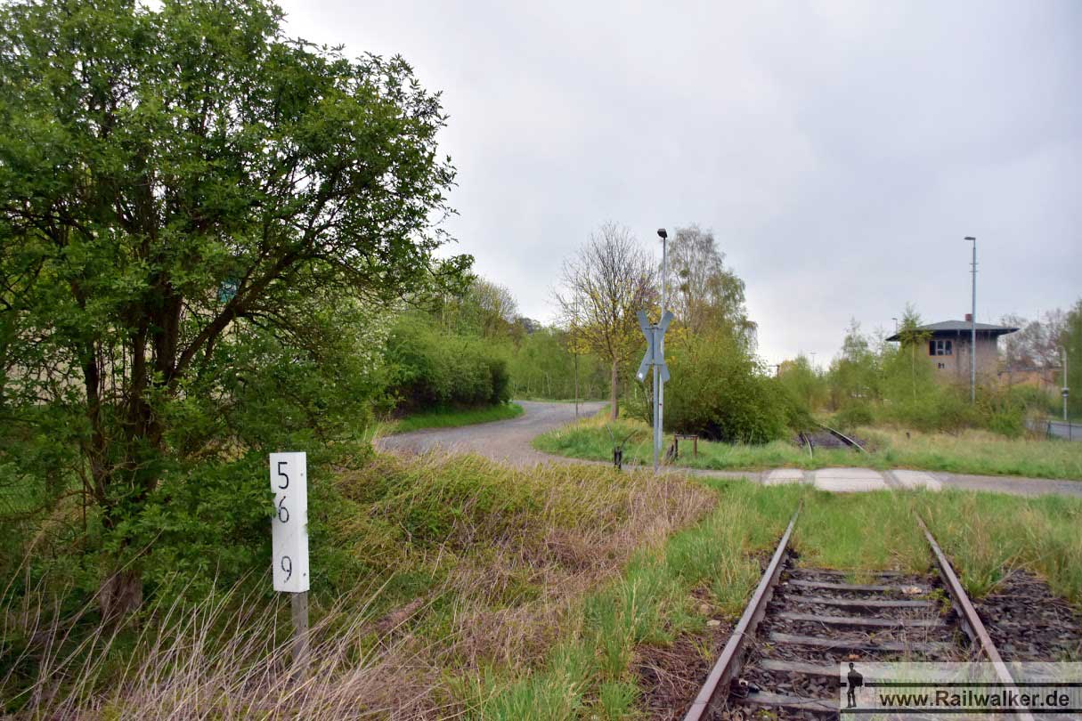 In Krugau Lager zweigt ein Anschluss zu einer Bundeswehreinrichtung mit eigener Kilometrierung ab.