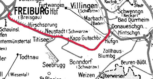 Freiburg (Breisgau) Hbf -1,594 - Titisee 29,29 - Donaueschingen 74,77 (1945)