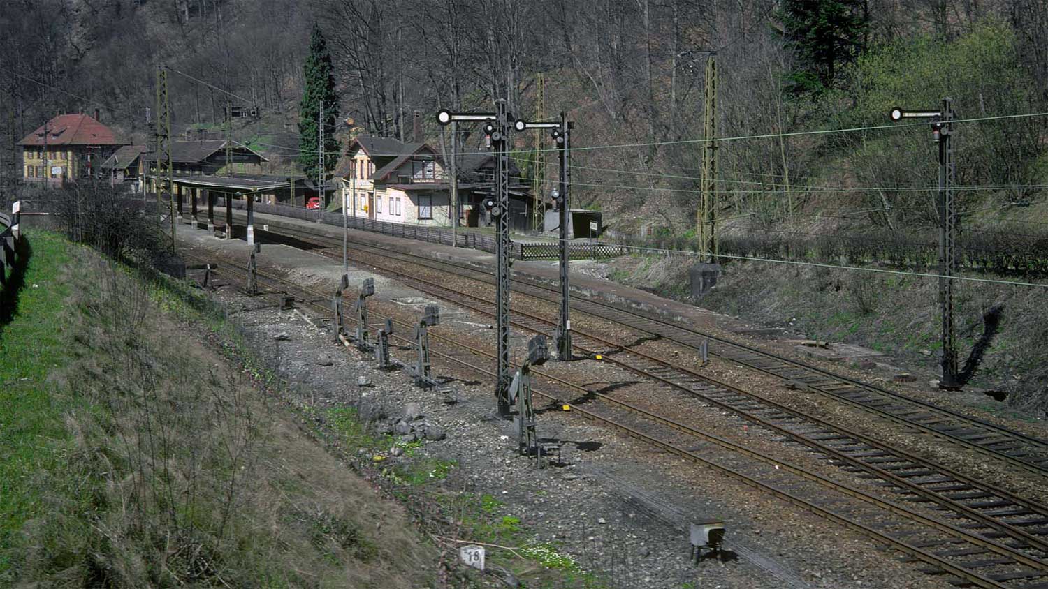 Donaueschingen | 74,72 | km 99,77 der Strecke Offenburg 0,05 - Hausach 33,17 - Villingen (Schwarzw) 85,86 - Donaueschingen 99,77 - Immendingen 119,01 - Hattingen (Baden) 123,57 - Singen (Hohentwiel) 149,14 (Streckennummer: 4250) |