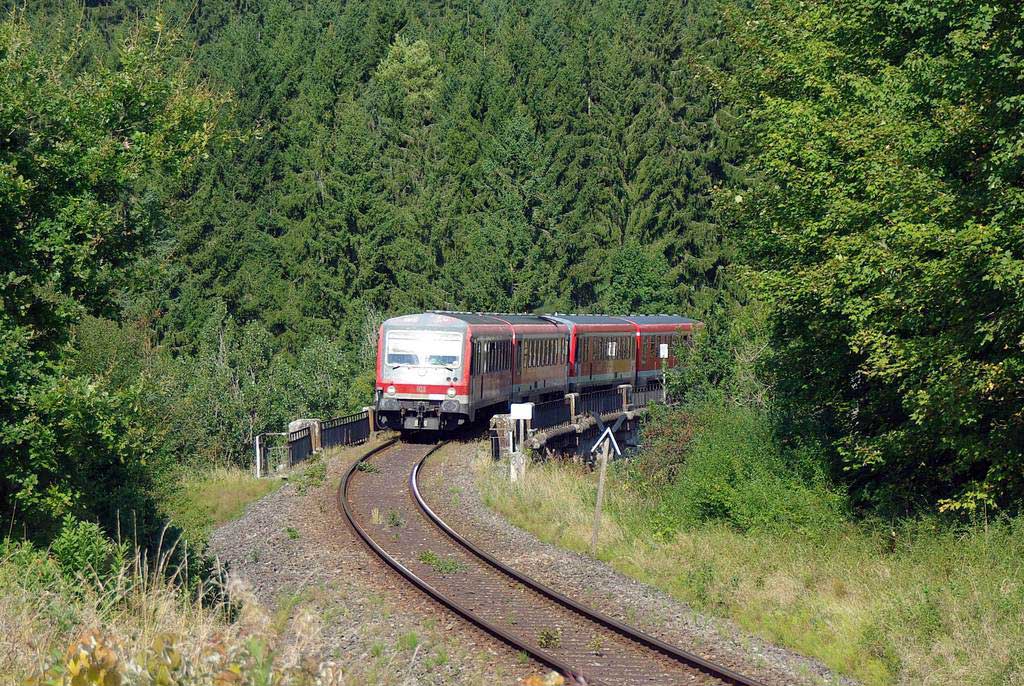 km 60,1 (Stein) zwischen Unadingen und Döggingen am Mauchachtal-Viadukt - Blick Richtung Donaueschingen