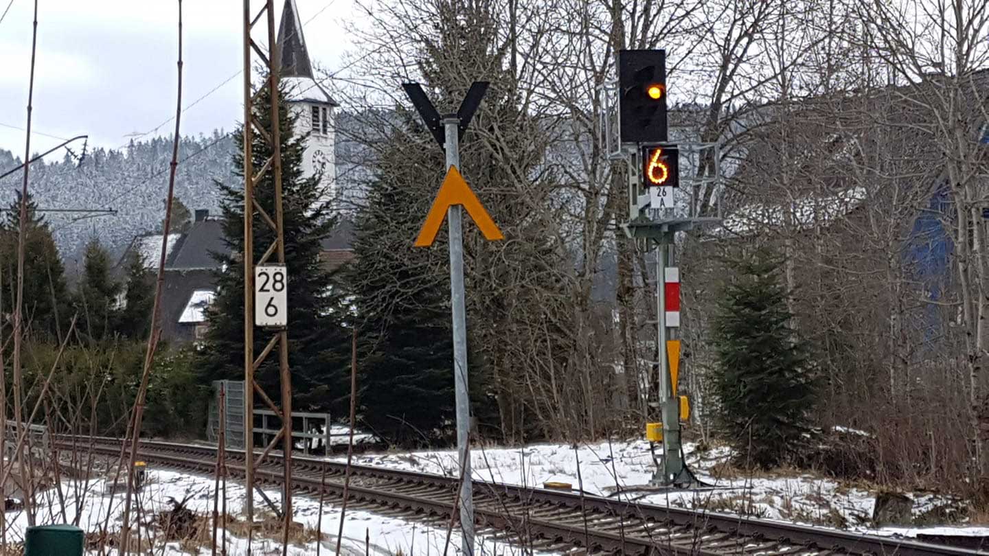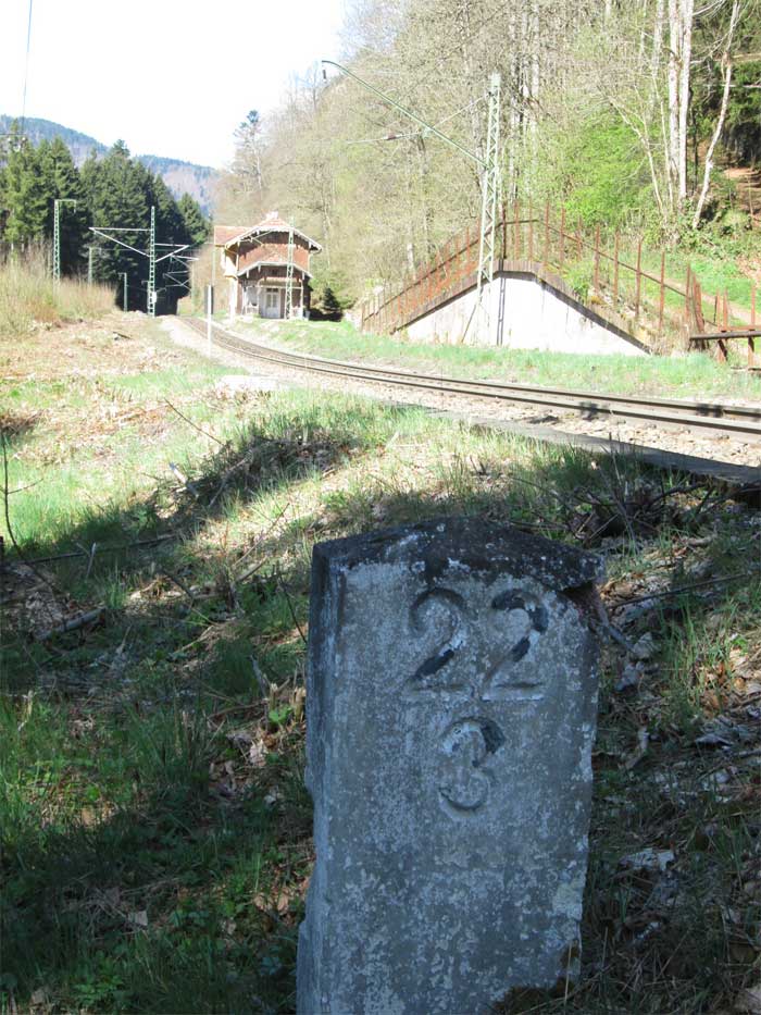 Rechts abgehend die Strecke Titisee 0,0 - Seebrugg 19,18