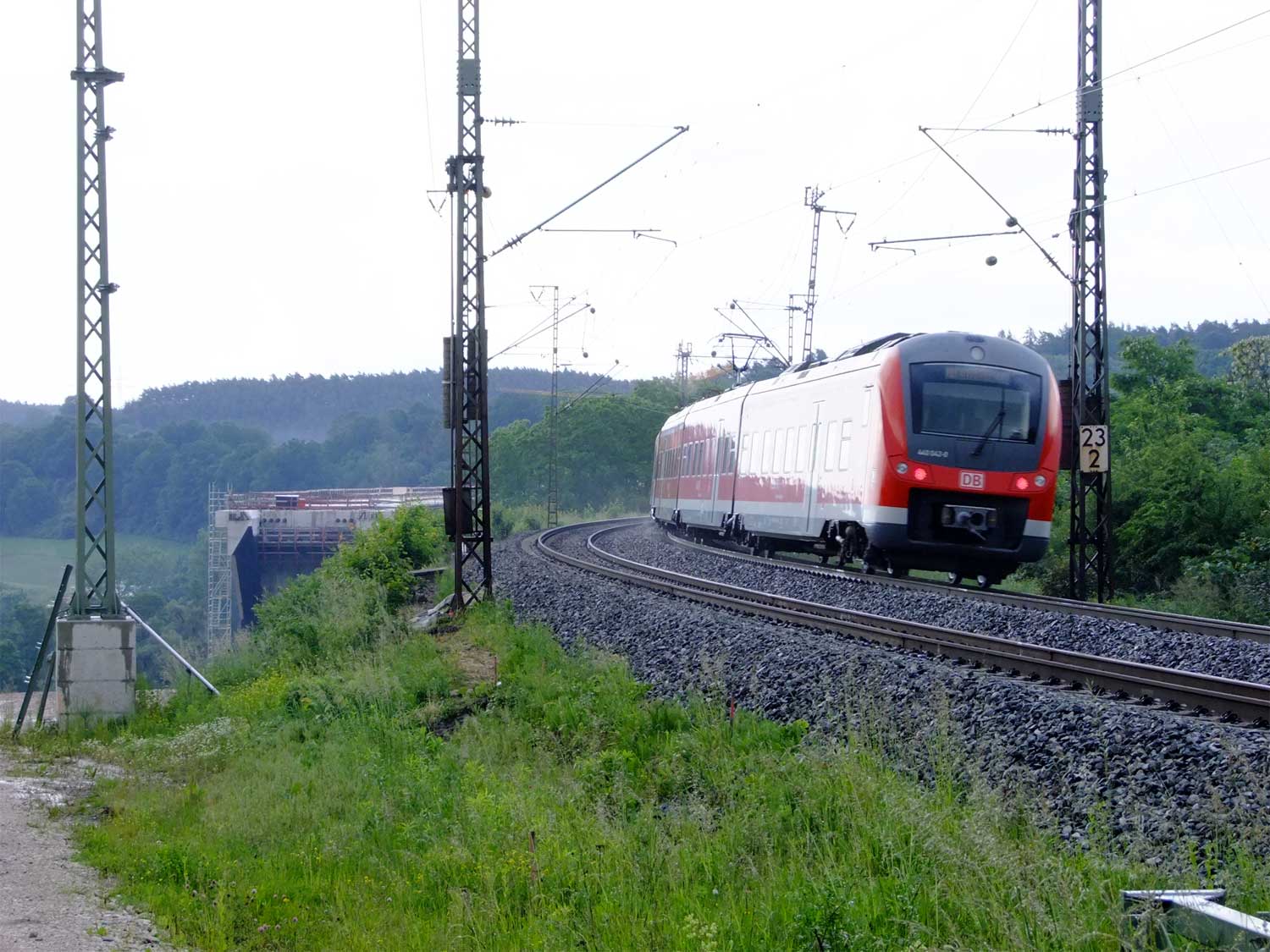 Links der Neubau der Aurachtalbrücke Emskirchen