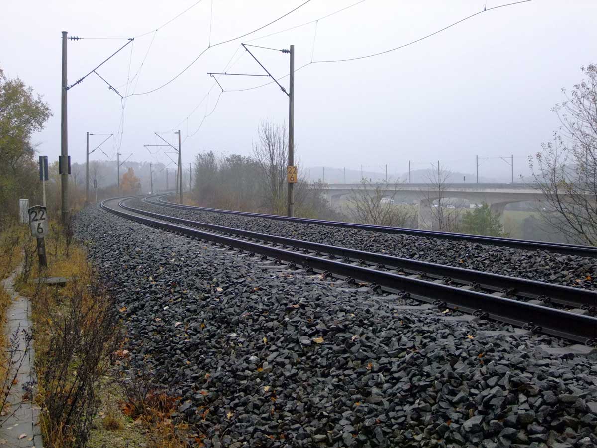 Rechts teilweise noch zu sehen km 8,2 der Strecke Nürnberg Hbf 0,0 - Bamberg 62,40
