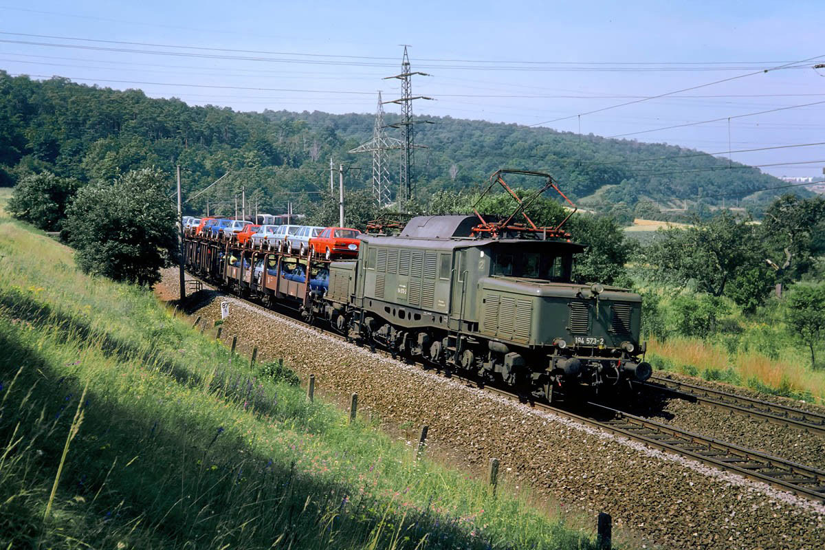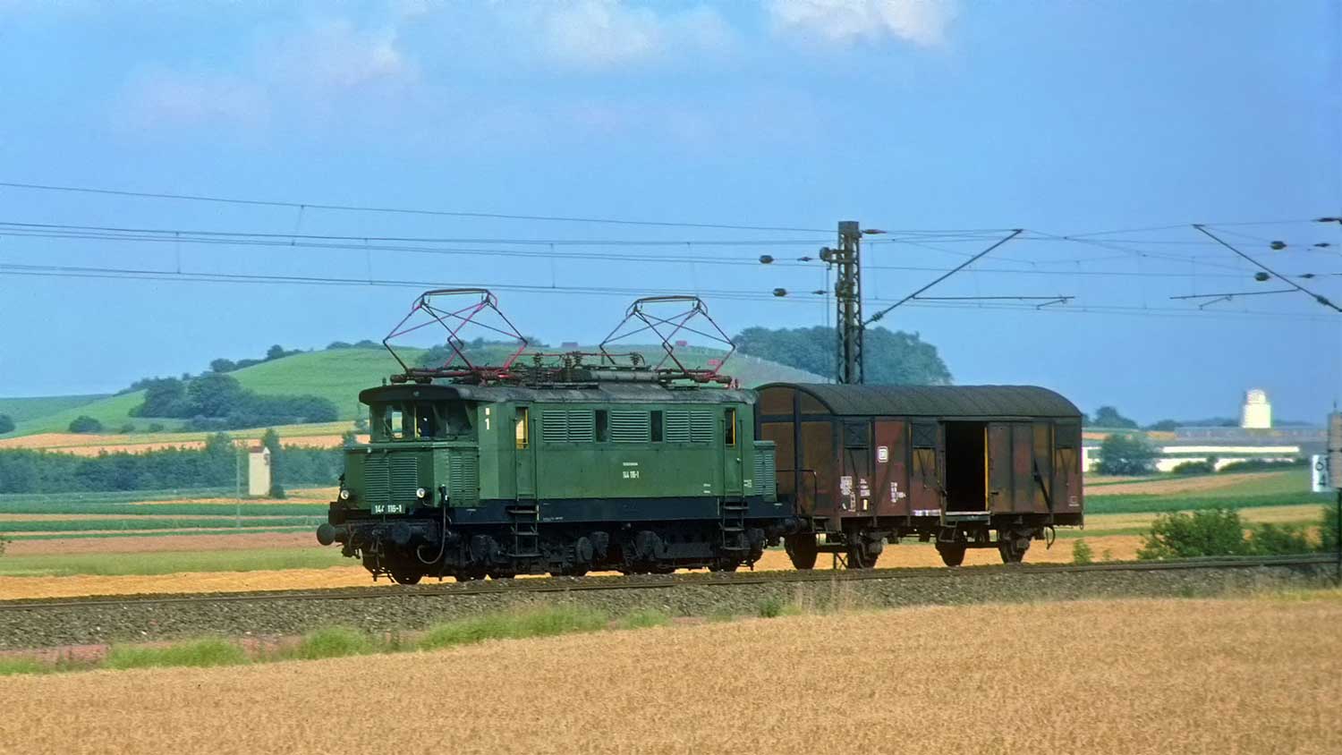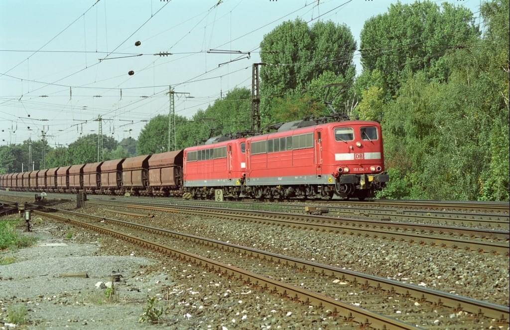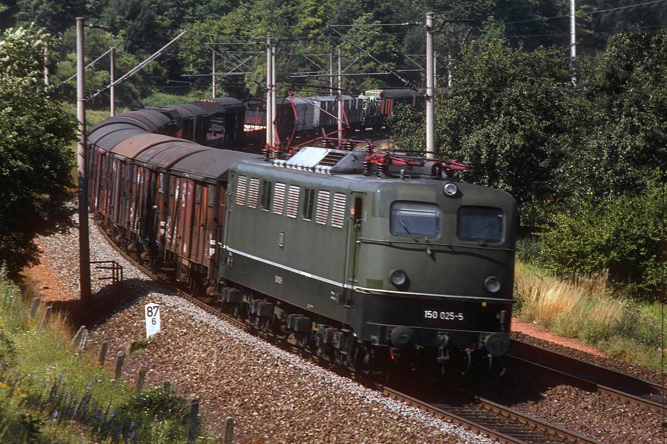Der Dg61437 (Würzburg – Regensburg) mit 151 039 führte zwei sechsachsige Tiefladewagen an der Spitze mit sich.