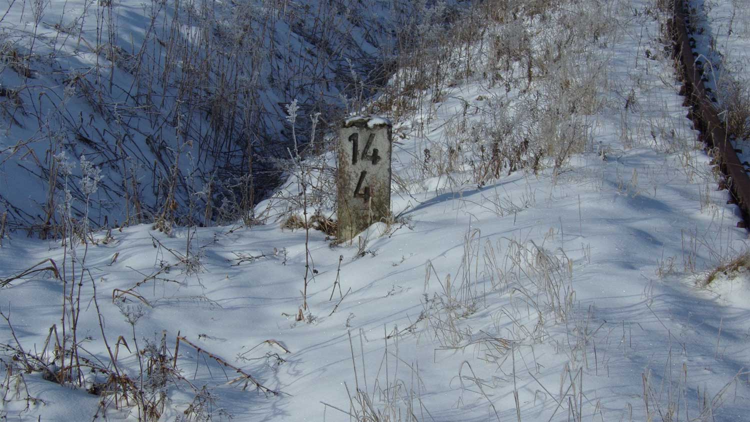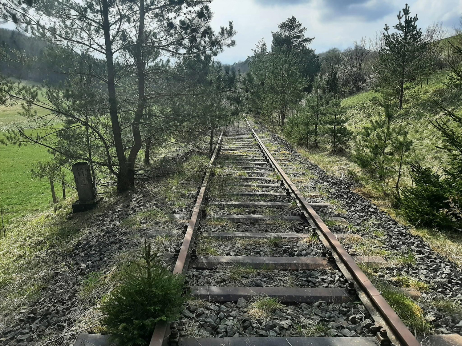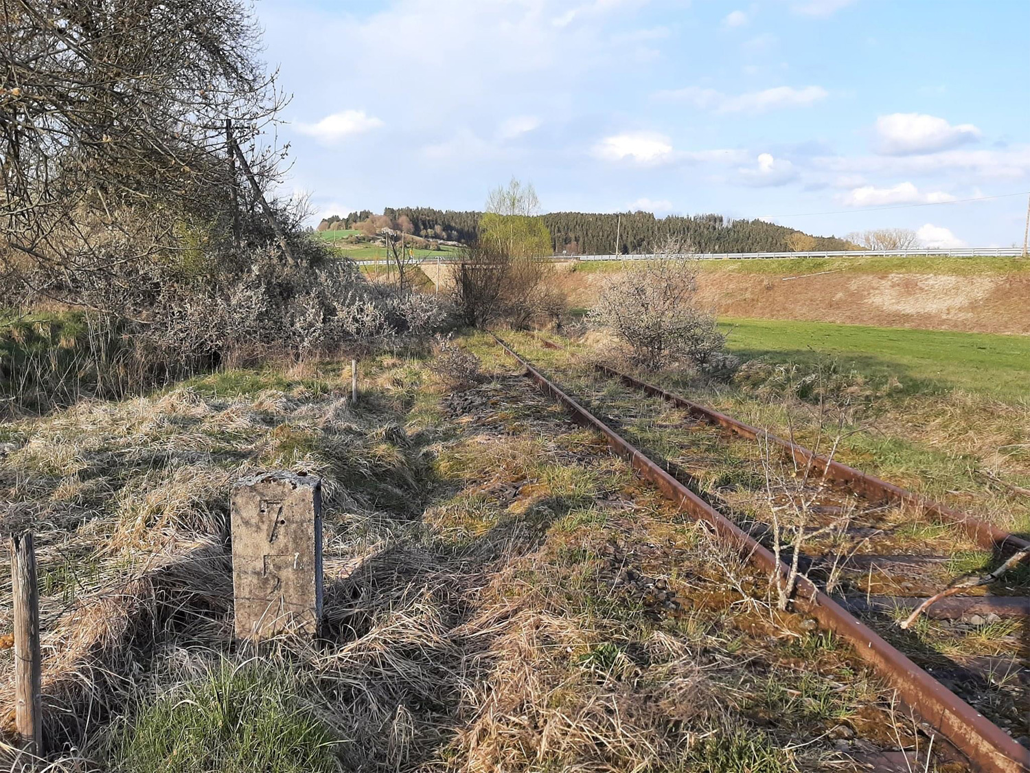 Die Strecke ist schon lange außer Betrieb, der Stein blieb zum Glück erhalten.