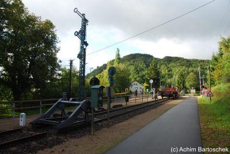 km 32,4 in Pronsfeld und eine Zusammenstellung von Signal- und Gleisanlagen