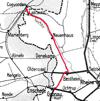 Gronau (Westf) 0,0 - Bentheim Nord 18,7 - Laarwald 71,2 - Coevorden 76,1 (Bentheimer Eisenbahn/Privatbahn)