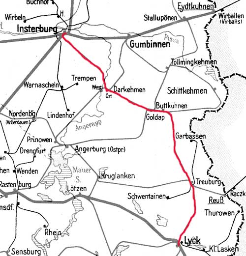 Ełk (Lyck) 0,0 - Gołdap (Goldap) 65,316 - Grenze Polen/Rußland 72,680 - Черняховск (Tschernjachowsk) (Insterburg) 118,9