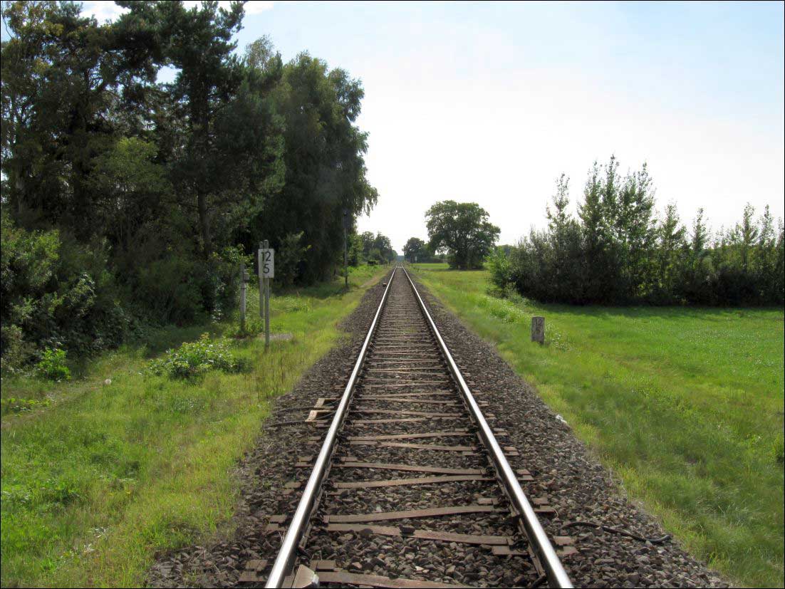 km 54,5 (links) in Wieren - Blick Richtung Streckenende