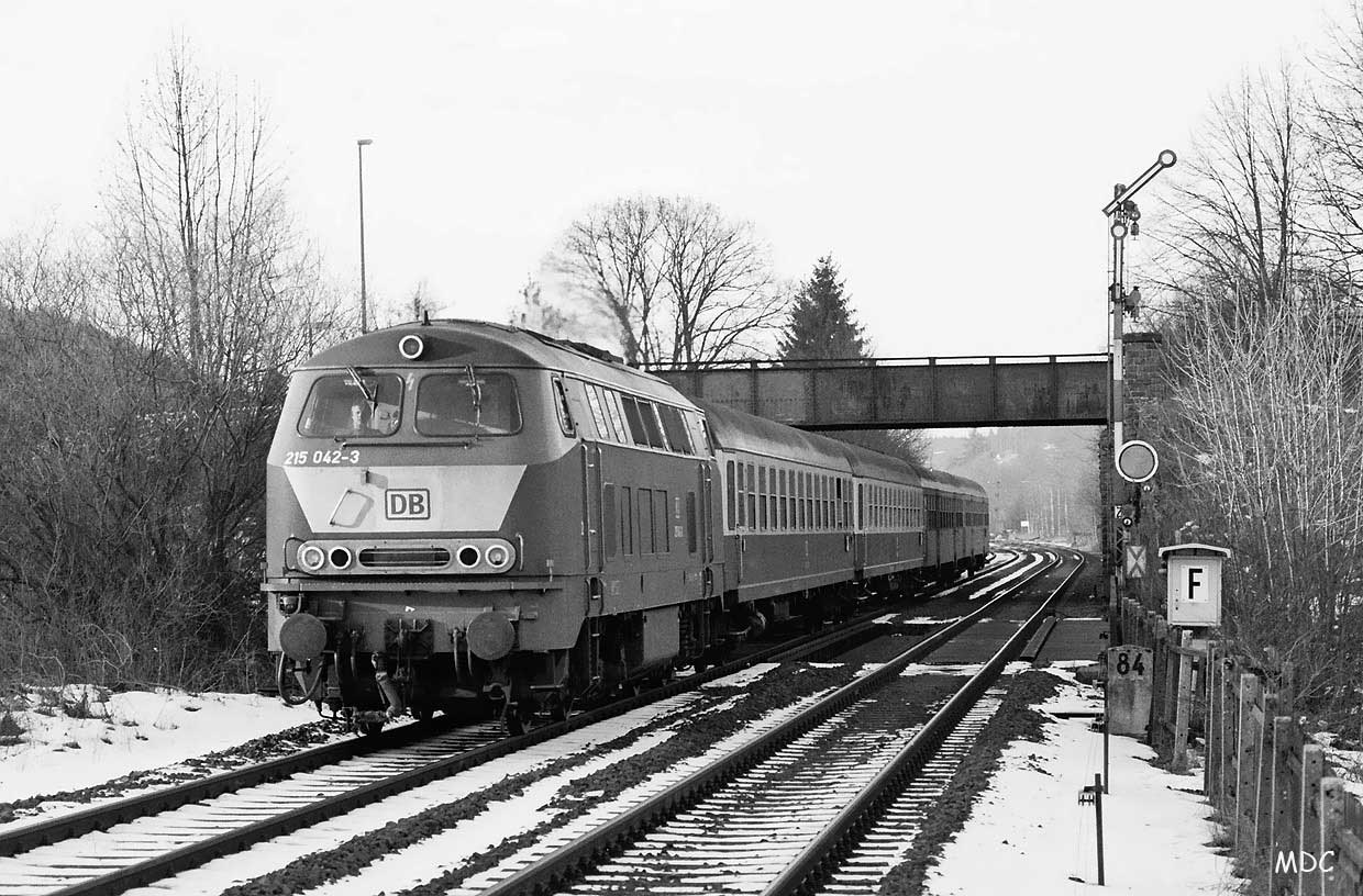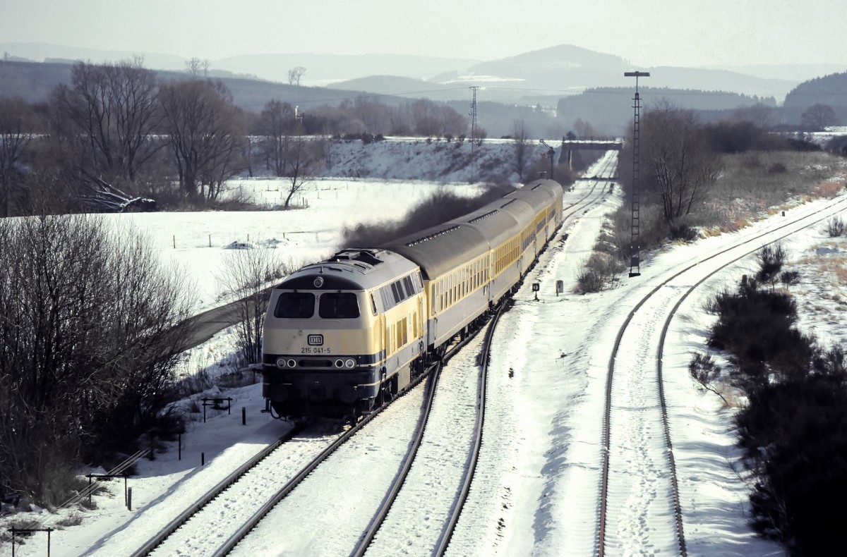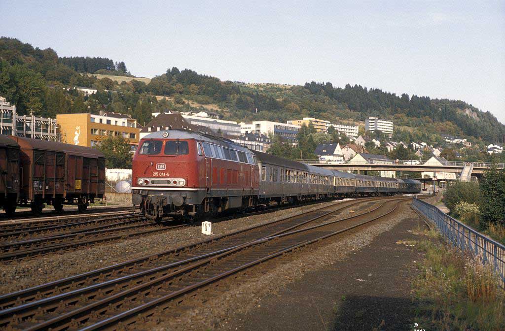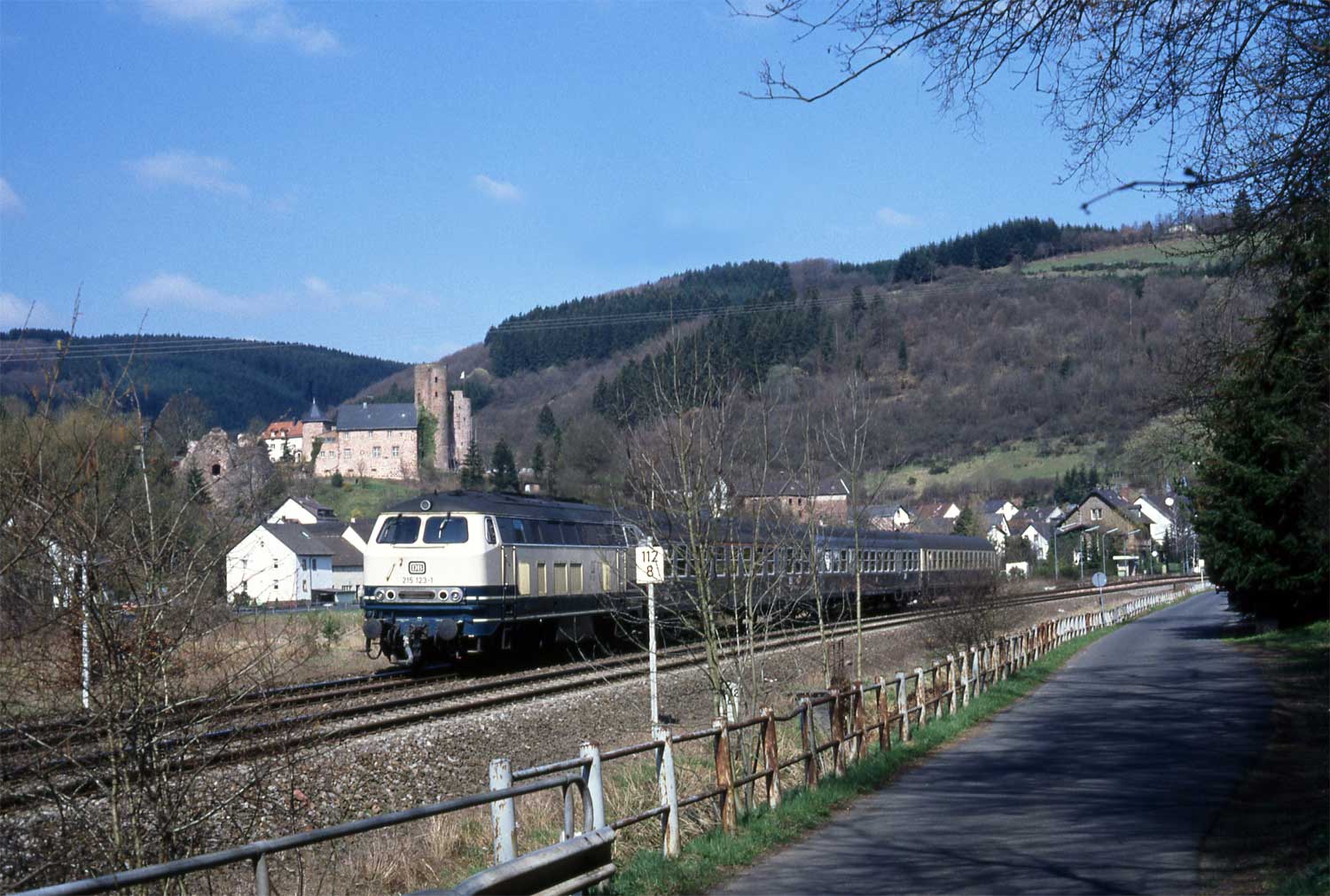 km 111,6 bei Mürlenbach - 215 029 mit D 2136 (Emden-Münster-Trier)
