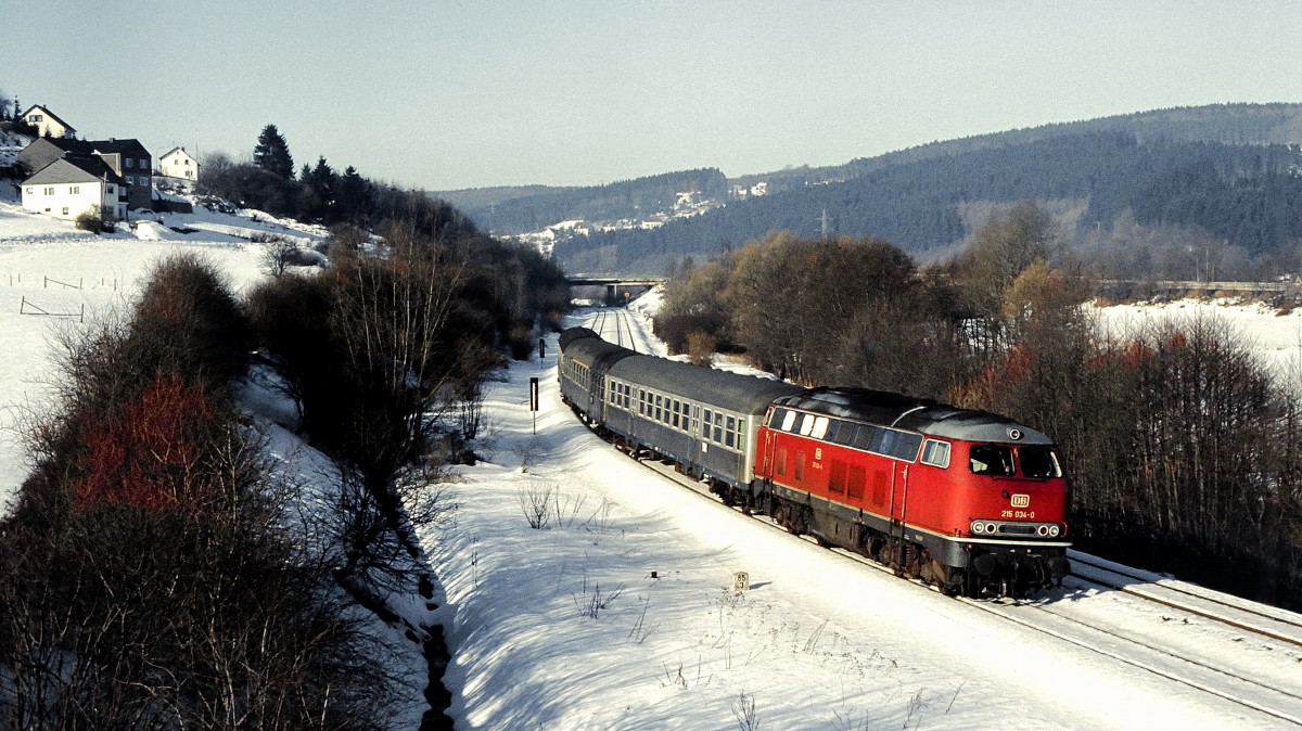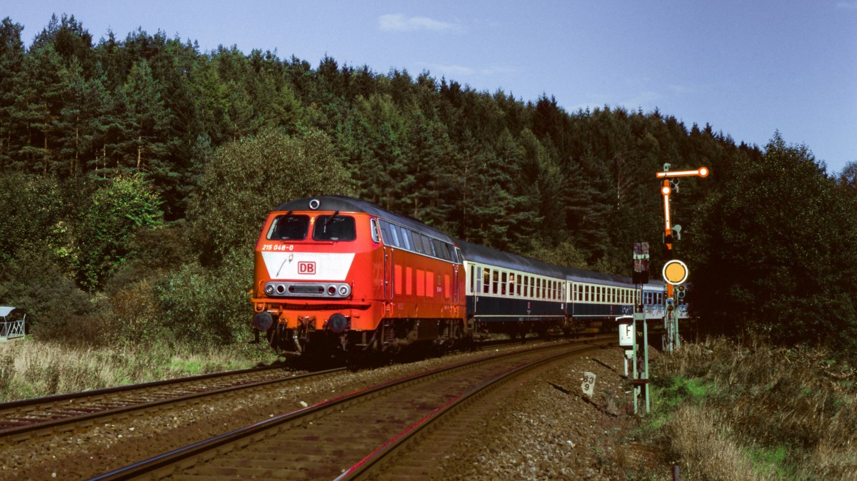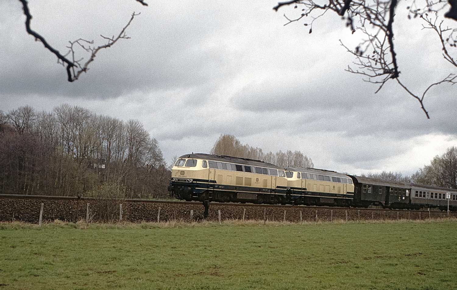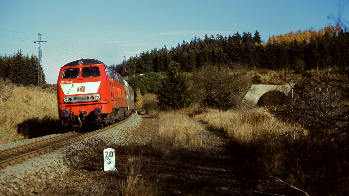 km 111,6 bei Mürlenbach - 215 029 mit D 2136 (Emden-Münster-Trier)