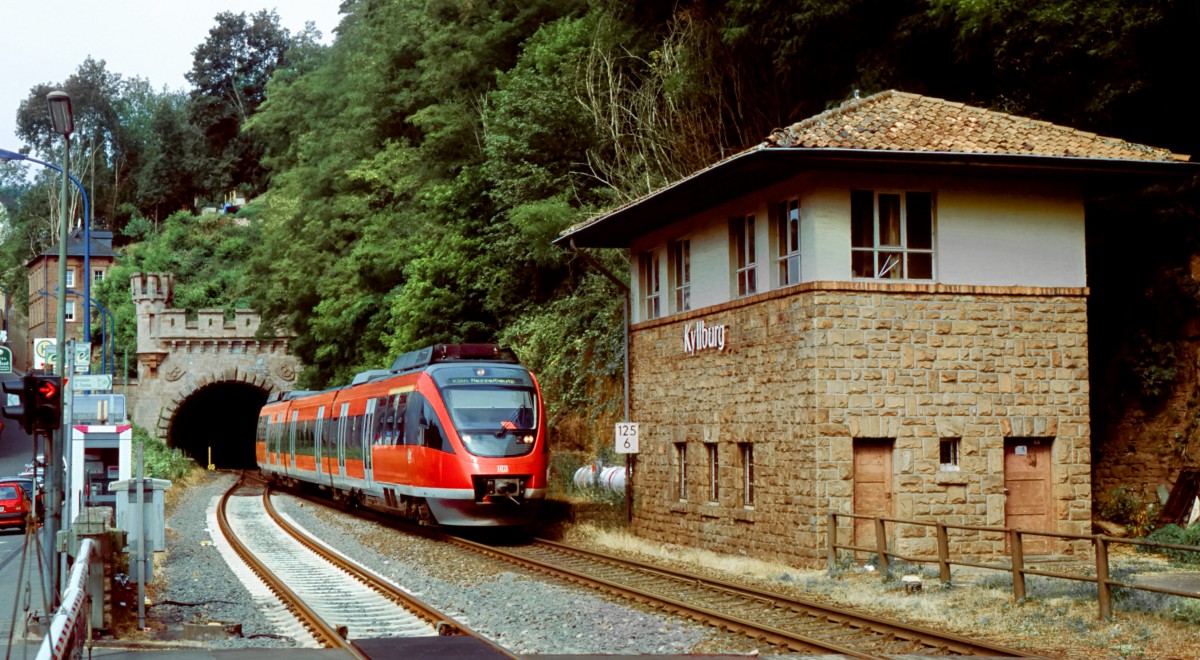 km 125,6 in Kyllburg - Stellwerk Kf und Ostportal des Kyllburger Tunnels - Blick Richtung Ehrang
