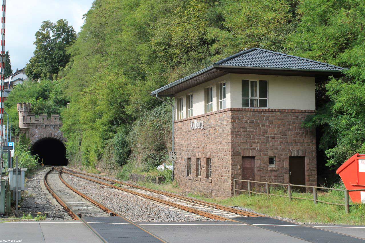 km 125,6 in Kyllburg - Stellwerk und Ostportal des Kyllburger Tunnels - Blick Richtung Ehrang