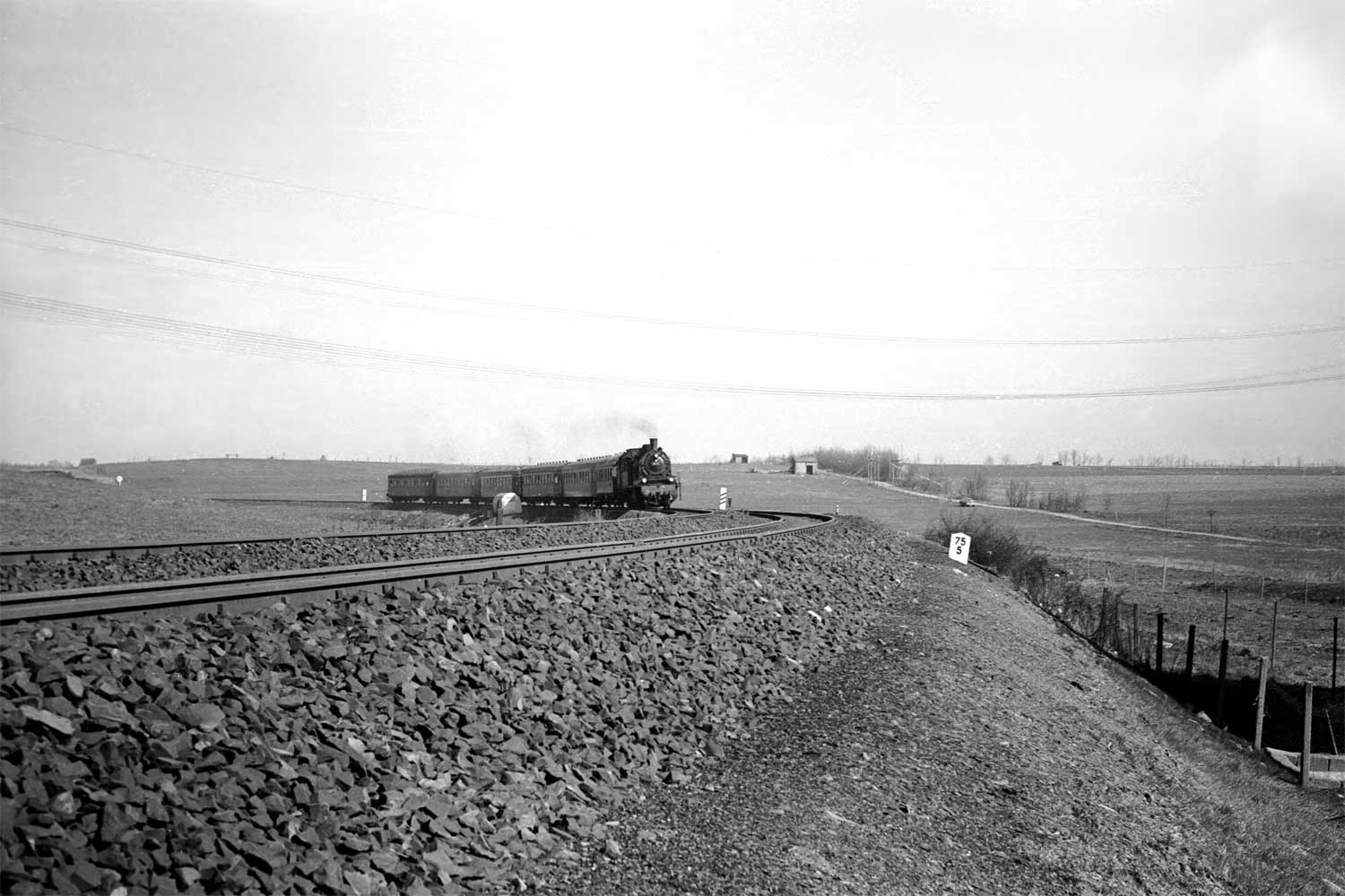 80,228 | Verbindungskurve zur Strecke Jünkerath 0,0 - Hallschlag 10,5 - Staatsgrenze Deutschland/Belgien (1919-1921 und 1949-1958) 15,135 - Losheim (Eifel) 16,3 - Staatsgrenze Deutschland/Belgien (bis 1919, 1921-1949 und an 1958) 19,671 - Weywertz 38,169 - (Malmedy 51,3) * |