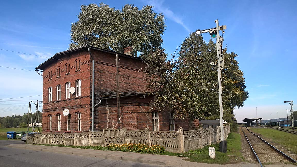 km 74,67 (gehend)/76,35 (kommend) der Strecke Breslau Hbf 0,06 - Glogau 95,97 - Reppen 220,47 - Küstrin Neust. Hbf 252,09 - Stettin Hbf 352,44