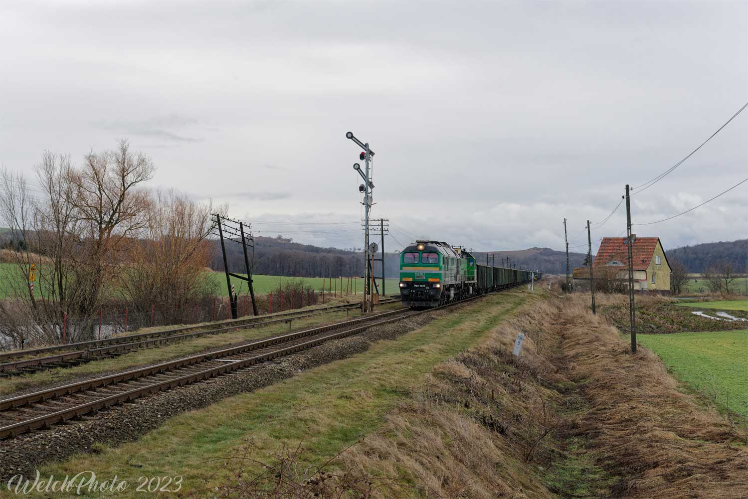 km 247,8 in Strzegom (Striegau) - TEM2-065 vor BR232-052