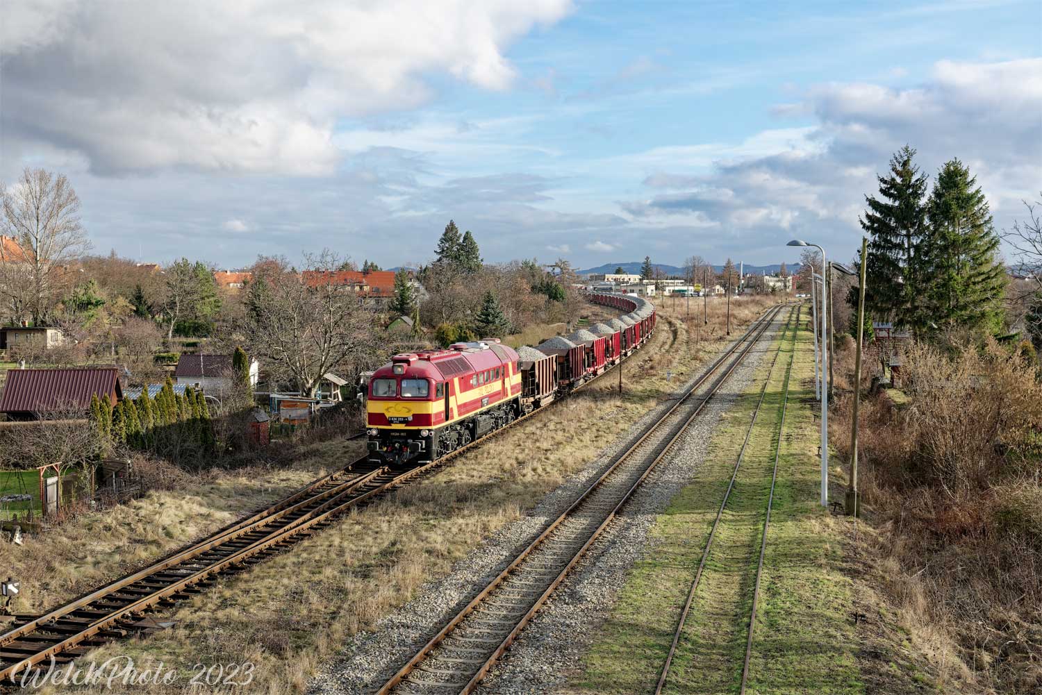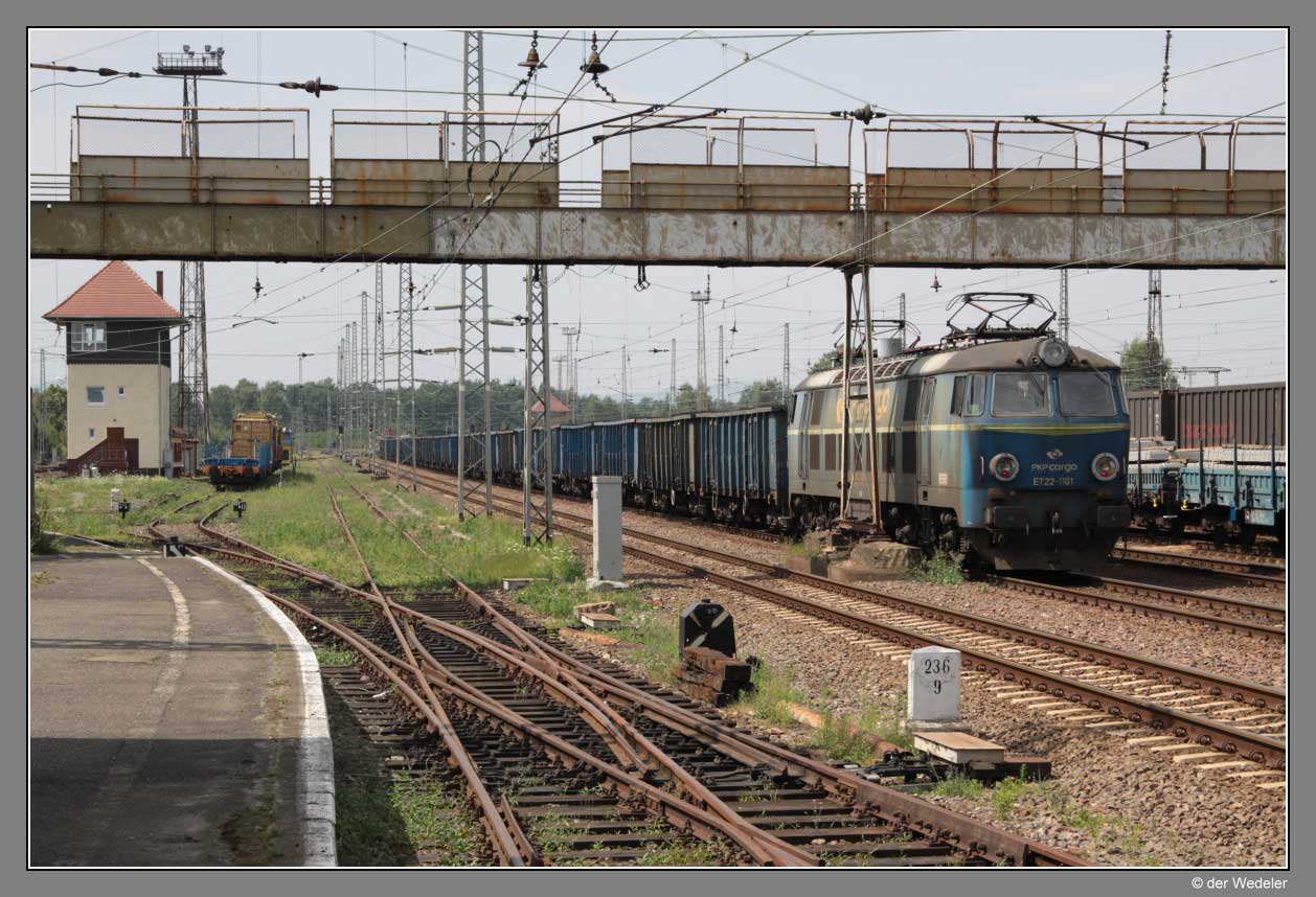 km 236,9 in Jaworzyna Śląska (Königszelt) - ET22-1161 am Schluss eines Leerkohlenzuges