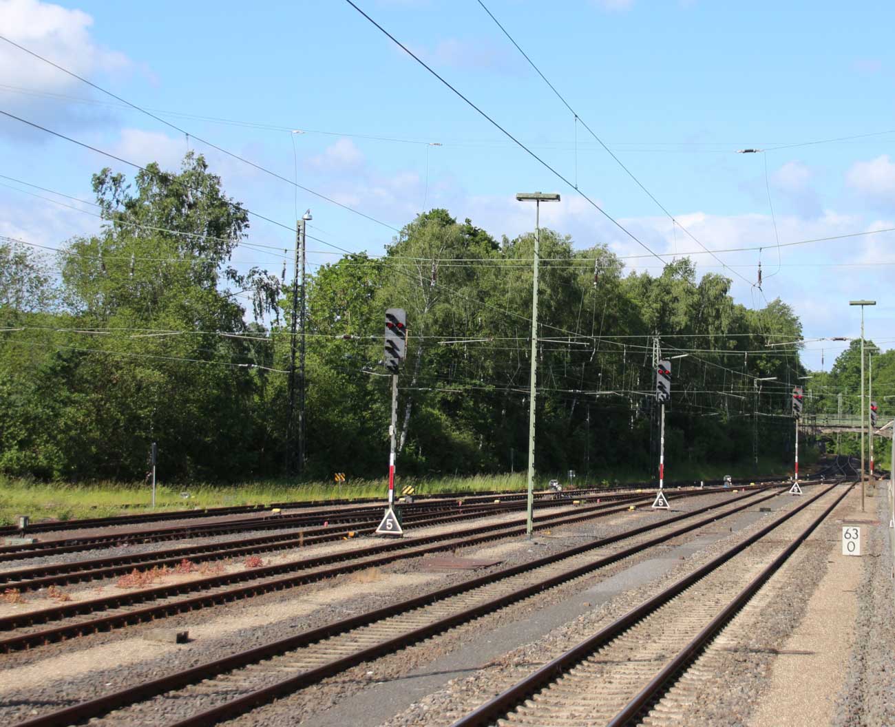 km 166,23 der Strecke Hannover Hbf 0,0 - Barnten 22,87 - (Abzw. nach Abzw. Rössing 26,68) - Northeim (Han) 88,56 - Göttingen 108,16 - Dransfeld 123,84 - Hann. Münden 142,03 - Kassel Hbf 166,23 | ||