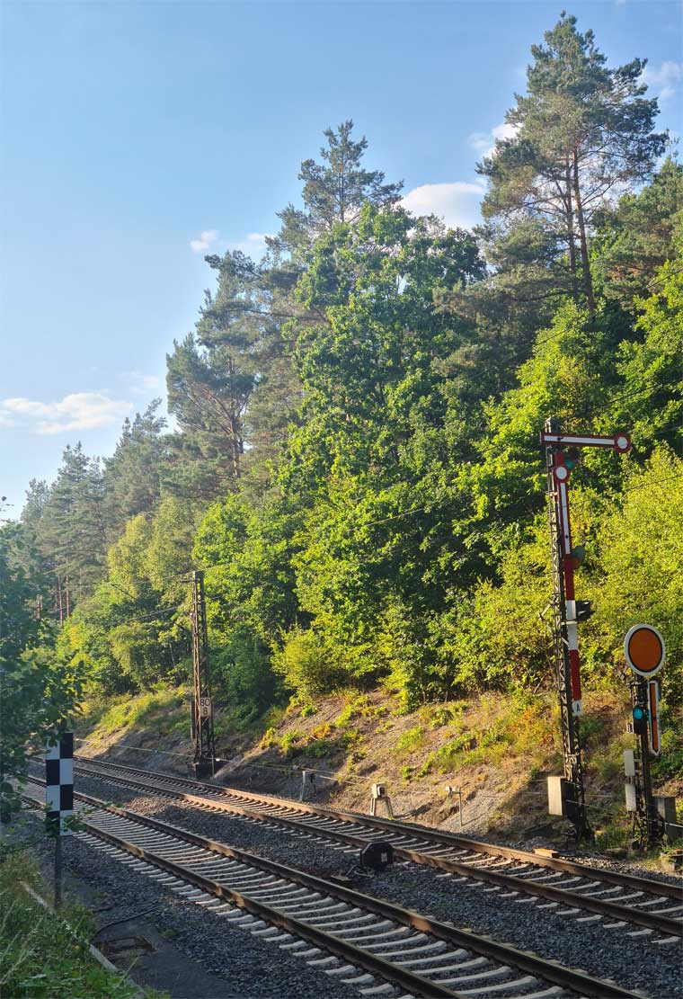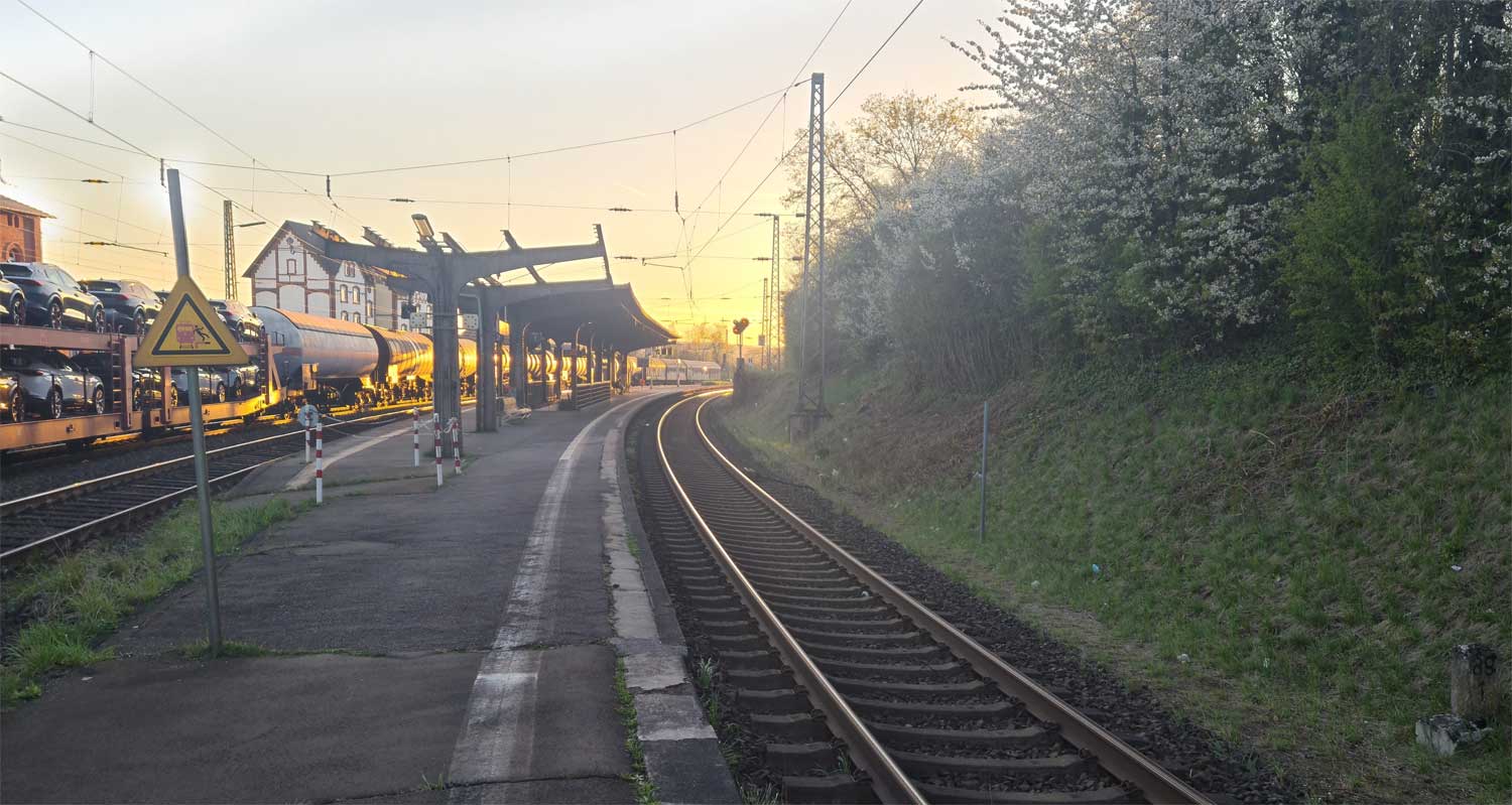 km 166,23 der Strecke Hannover Hbf 0,0 - Barnten 22,87 - (Abzw. nach Abzw. Rössing 26,68) - Northeim (Han) 88,56 - Göttingen 108,16 - Dransfeld 123,84 - Hann. Münden 142,03 - Kassel Hbf 166,23 | ||