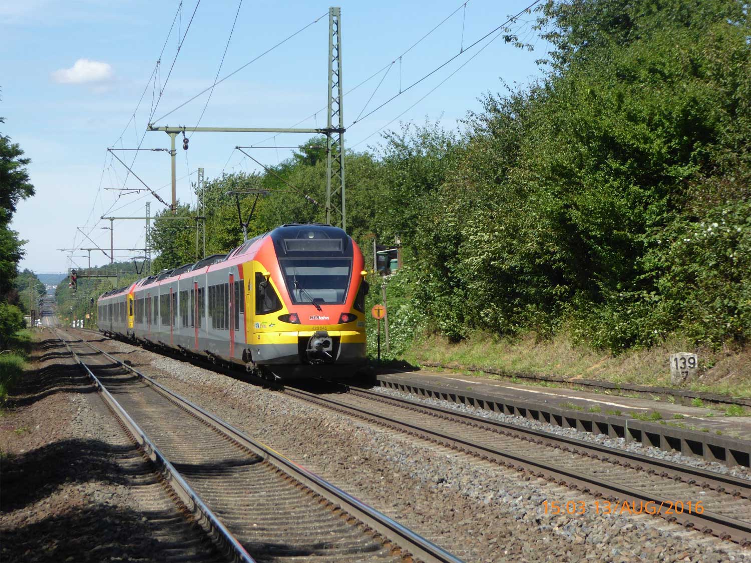 Köln Deutz 0,0 - Troisdorf 20,06 - Au (Sieg) 64,76 - Betzdorf (Sieg) 82,97 - Haiger 118,83 - Dillenburg 125,00 - Wetzlar 153,40 - Gießen 166,00