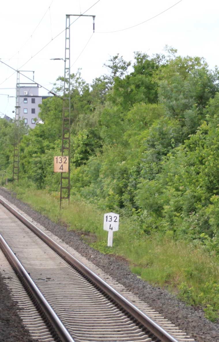 km 132,0 (Tafel - Stein - Tafel); km 132,1 Stein) und km 132,2 (Stein) zwischen Lollar und Gießen