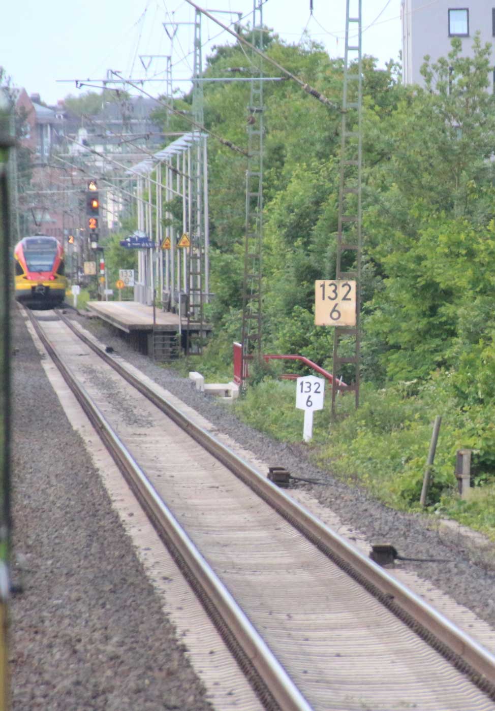 Gießen | 133,97 | km 166,00 der Strecke Köln Deutz 0,0 - Troisdorf 20,06 - Au (Sieg) 64,76 - Betzdorf (Sieg) 82,97 - Haiger 118,83 - Dillenburg 125,00 - Wetzlar 153,40 - Gießen 166,00 |