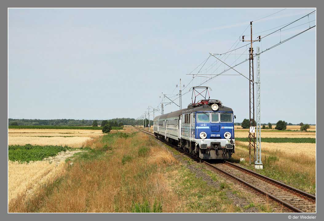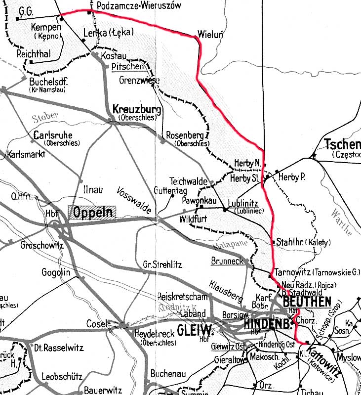 Chorzów Batory (Königshütte-Bismarck) 5,900 - Herby Nowe (Neu Herby) 69,439 - Zduńska Wola-Karsznice (Karschnitz) 168,803 - Ponetów (Ponentow, 1943 Lockheim) 240,456 - Inowrocław (Inowrazlaw, selten Jungbreslau, von 1904 bis 1920 und im Zweiten Weltkrieg auch Hohensalza) 324,936 - Bydgoszcz Główna (Bromberg Hbf) 370,310 - Tczew (Dirschau) 497,919
