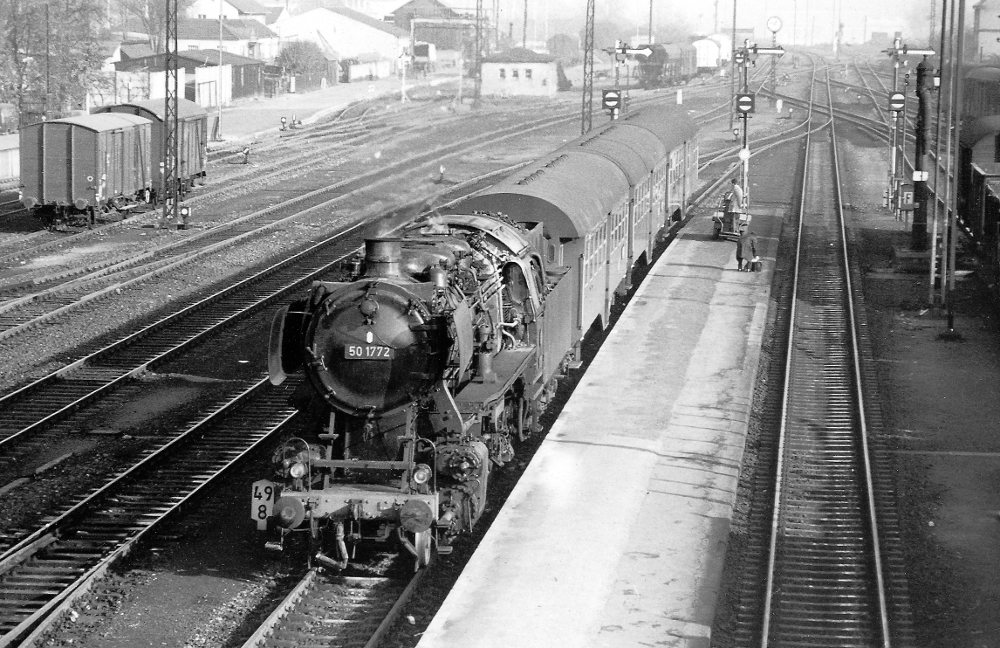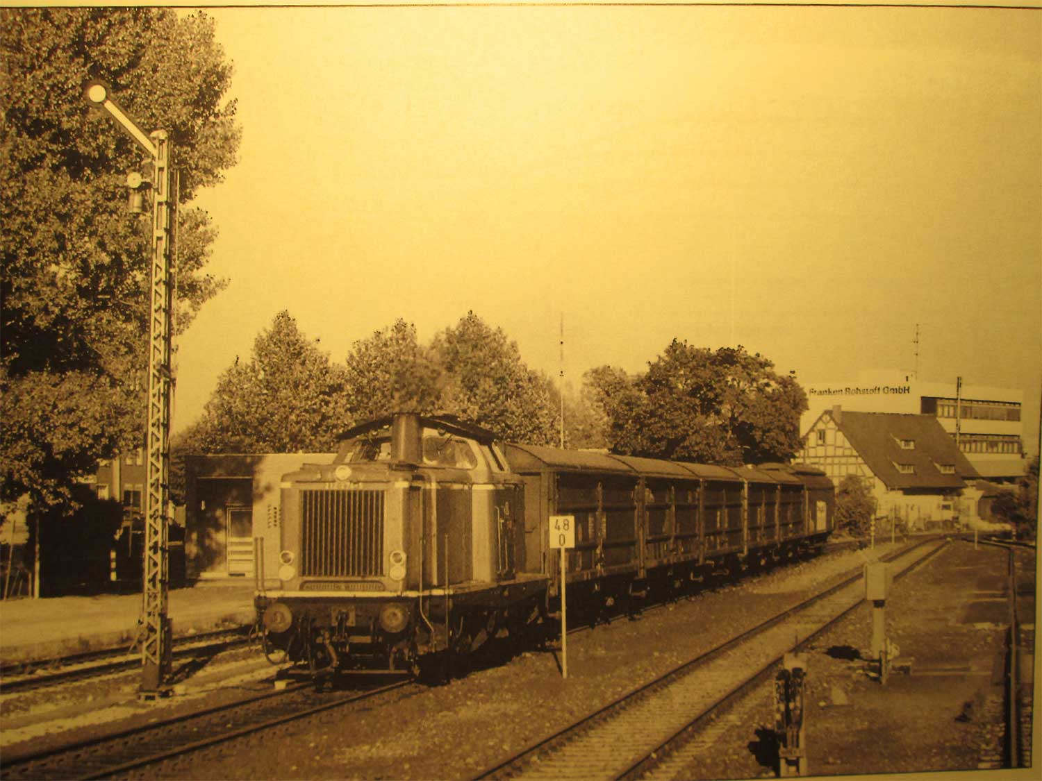 Schweinfurt Hbf - P 3511, der mit der 50 1772 von Kitzingen-Etwashausen (11.10) über Gerolzhofen (11.57) nach Schweinfurt (12.47) kam am km 49,8
