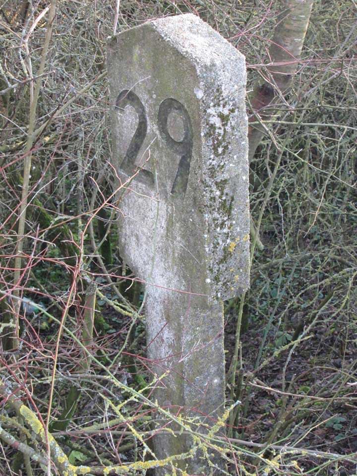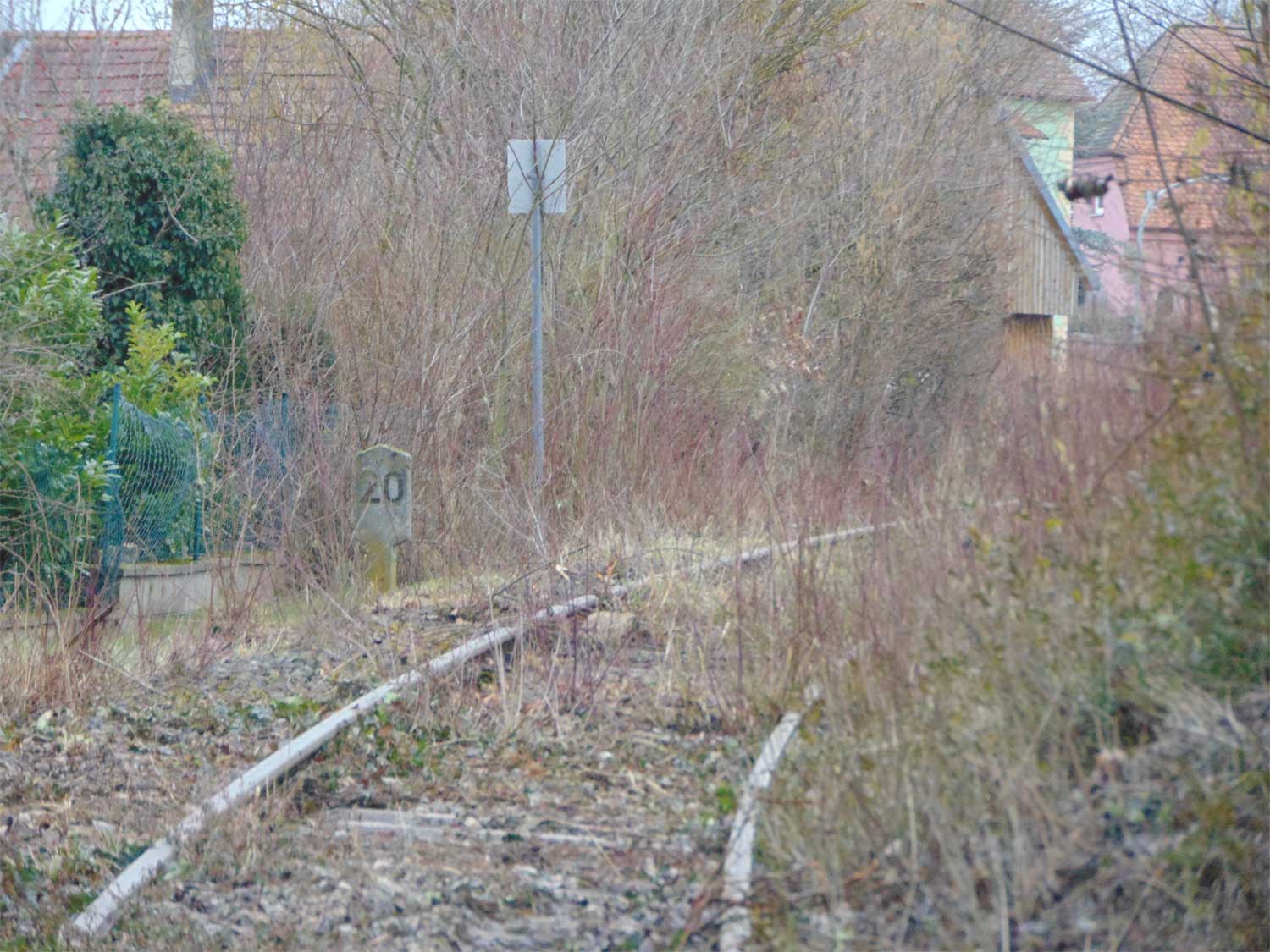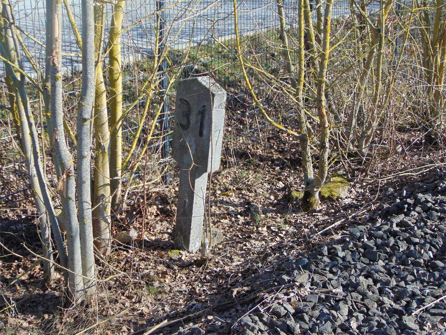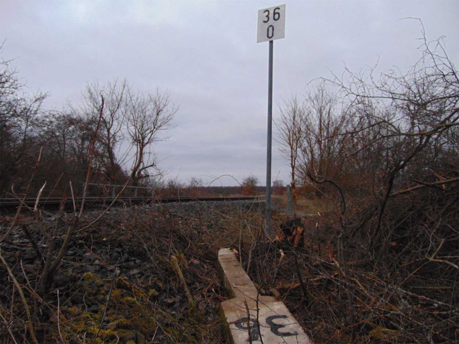 Dahinter vom Schnee verdeckt km 56,6 der Strecke Bamberg 0,0 - Schweinfurt Hbf 56,89 - Rottendorf 92,15