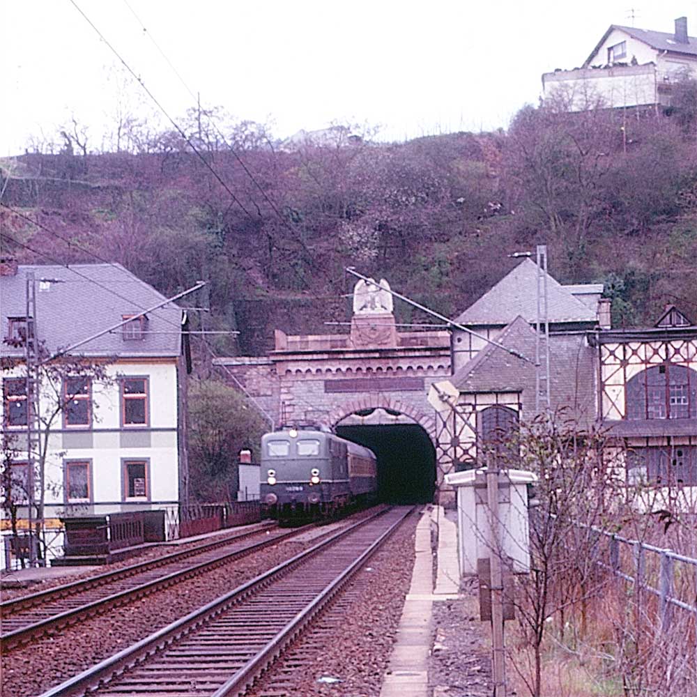 044 670 (Bw Koblenz-Mosel) hat gerade den Kaiser-Wilhelm-Tunnel verlassen und strebt dem Ziel Koblenz-Mosel entgegen