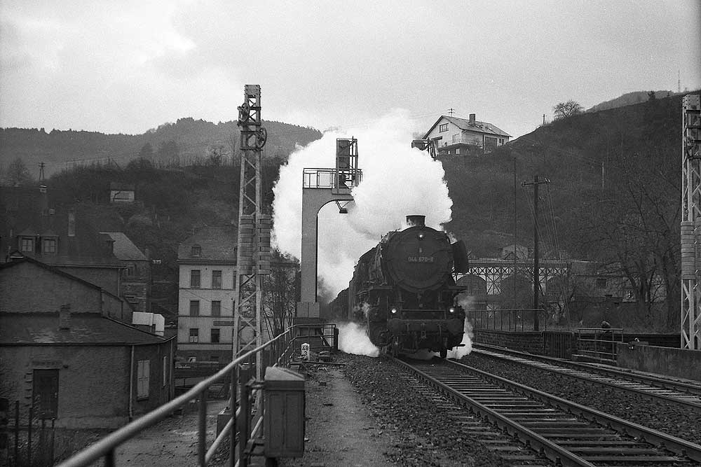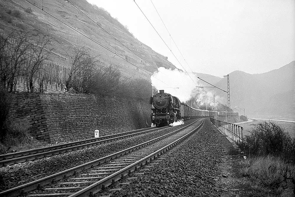 km 48,0 in Cochem (Mosel) - 044 321-8 (Bw Koblenz-Mosel) und 044 184-0 (Bw Ehrang) mit Güterzug